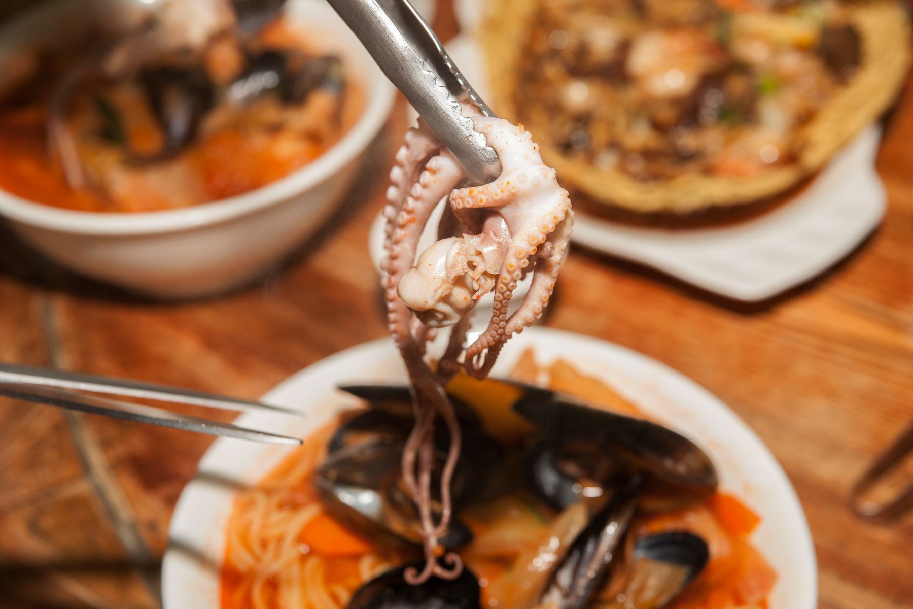 해물을 가득 넣어만든 볶음해물과 육즙이 가득하면서도 부드러운 소고기의 조합은