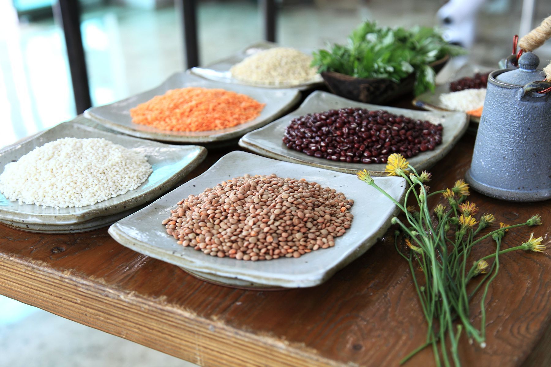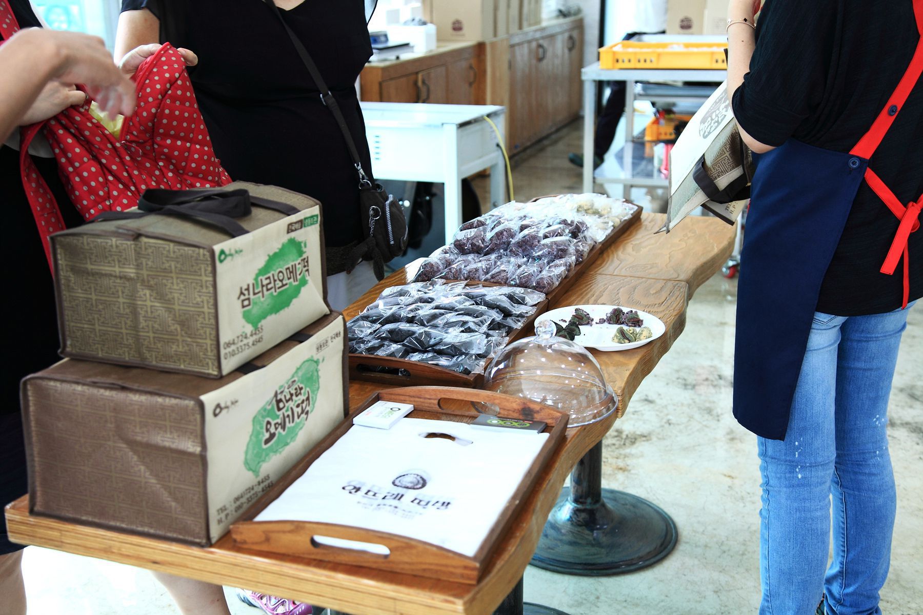 오메기떡,껍질벗긴 찰보리렌틸, 껍질안벗긴렌틸, 콩오쟁이떡,흑오쟁이떡 등이 준비되어 있고