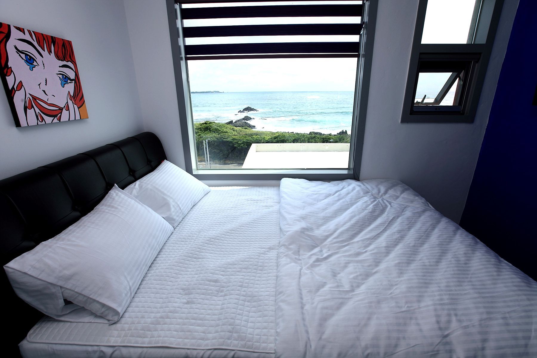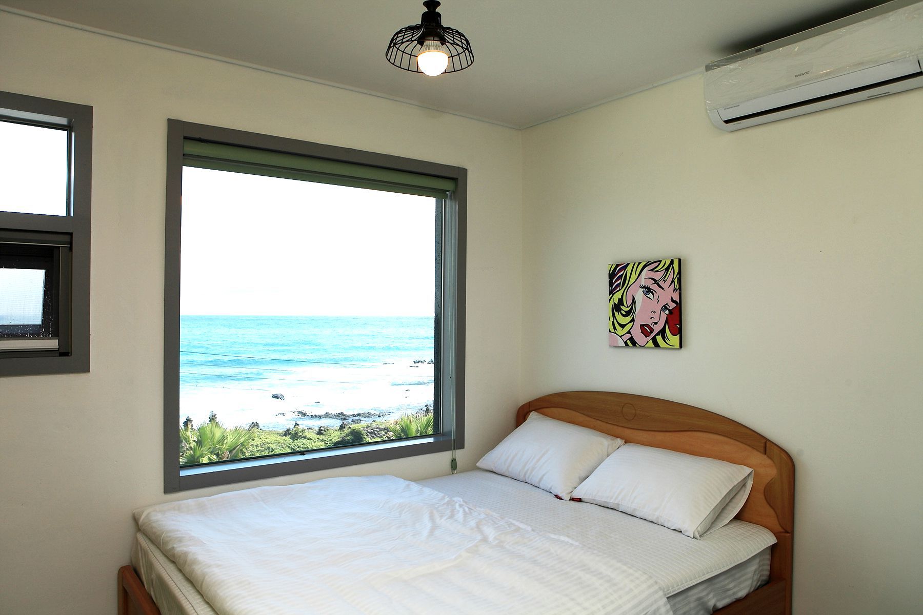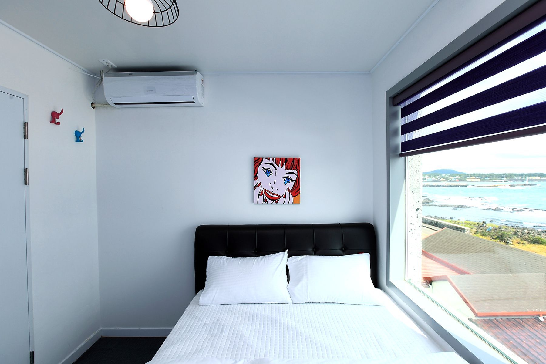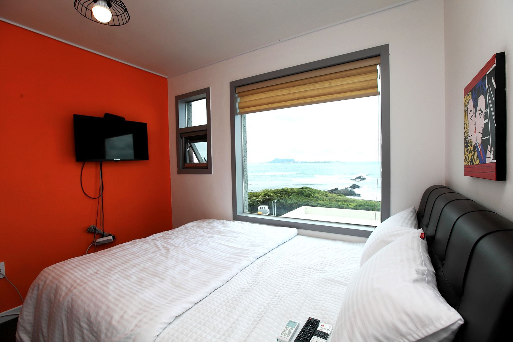 창가에서도 성산일출봉이 정면으로 보이는 아름다운 뷰가 인상적인 컬러풀한 룸으로