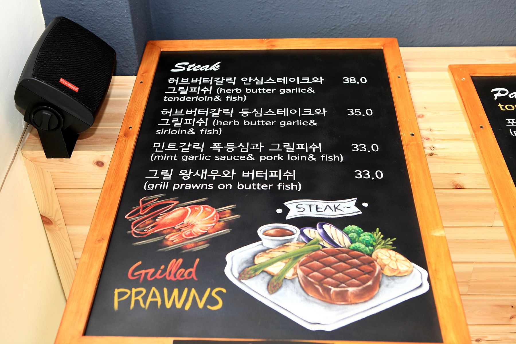 파스타,스테이크,스튜&라이스,에이드,커피 ,와인이 준비되어 있습니다.