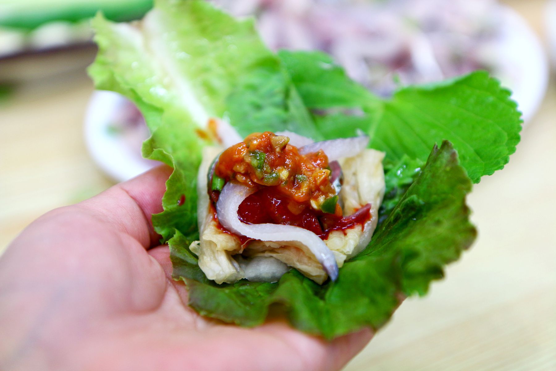 입맛에 맞게 초장이나 쌈장에 찍어 채소와 함께 쌈을 싸서 드셔도 맛있고