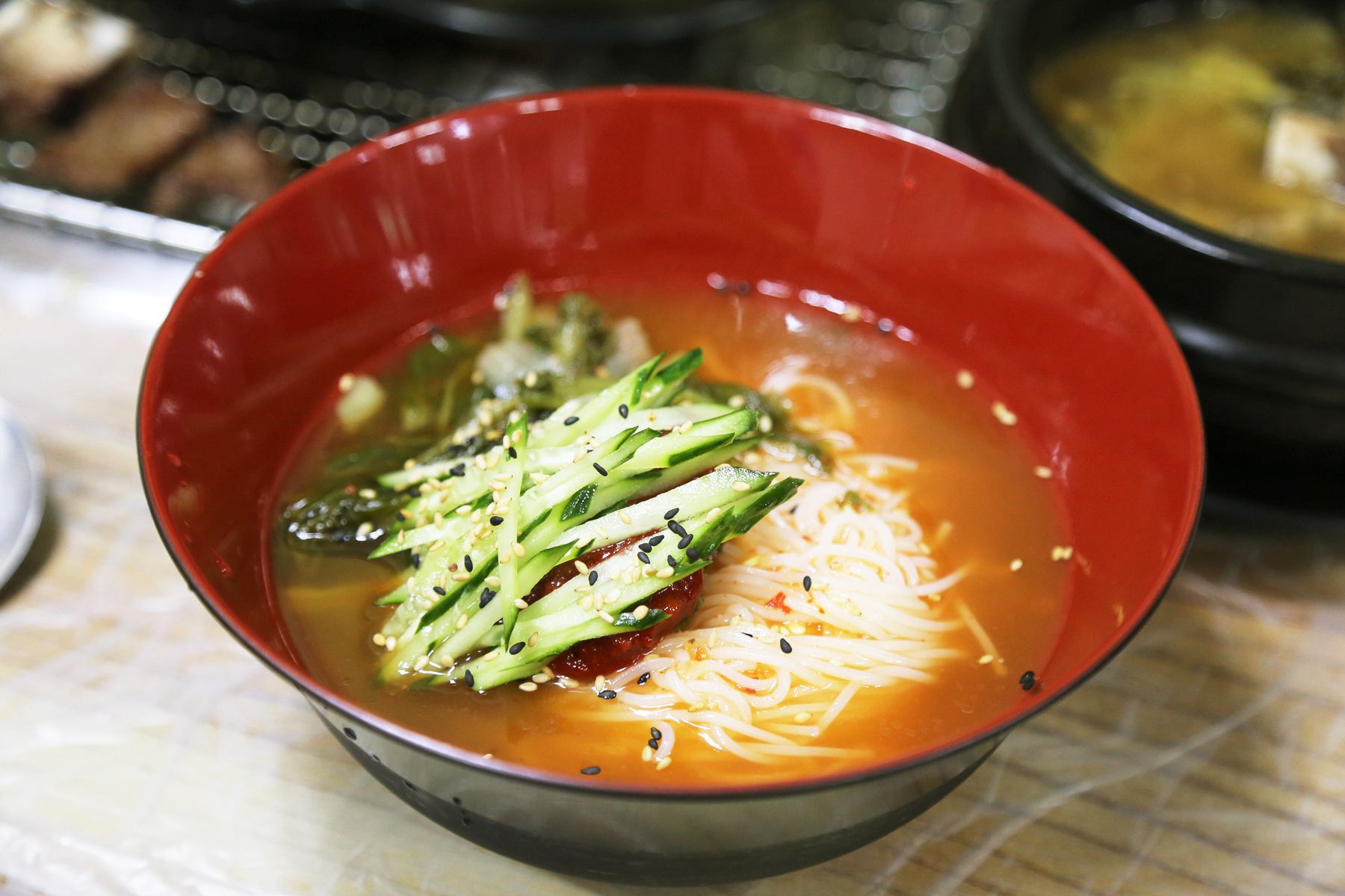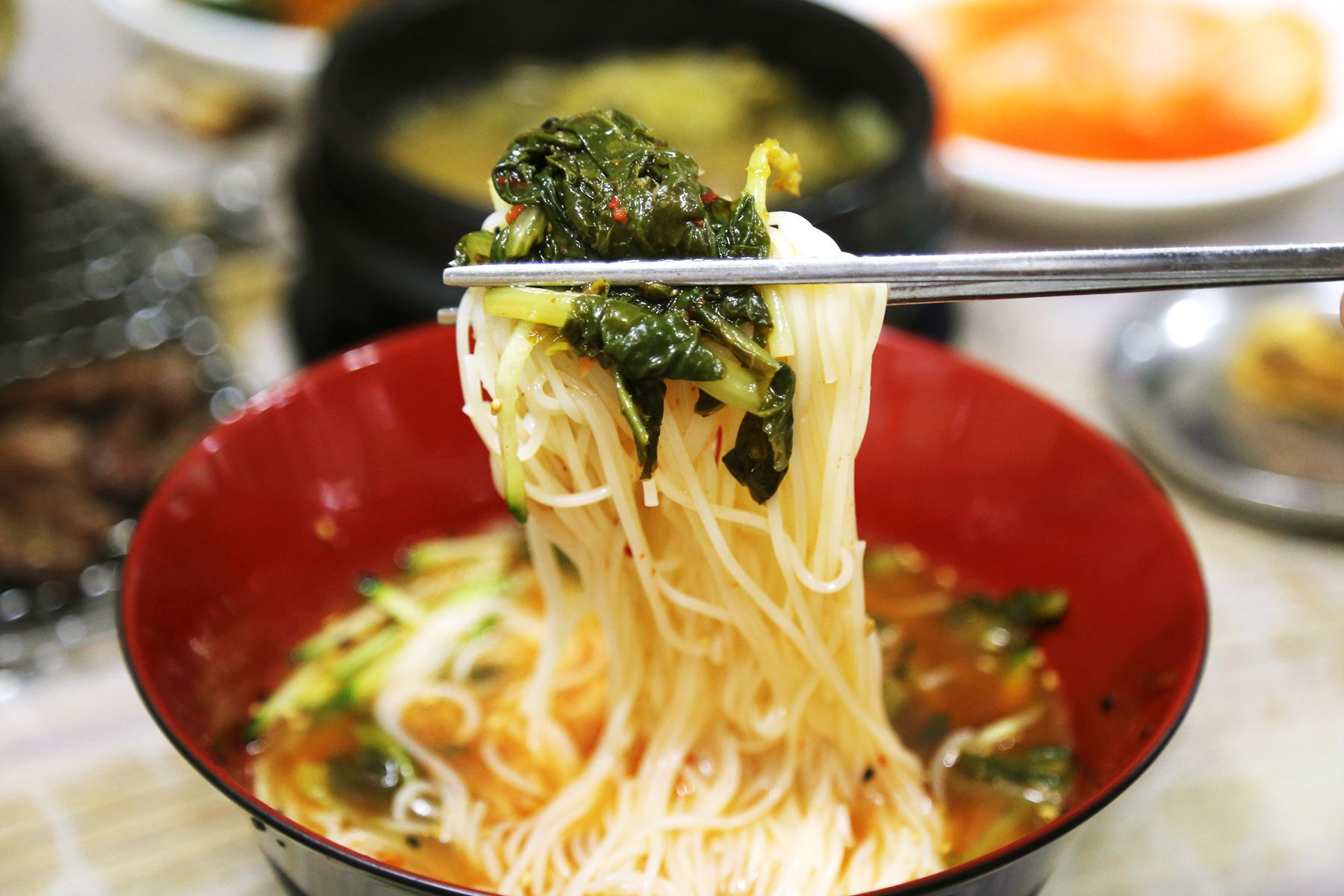 맛있는 고기한점과 시원한 육수가 돋보이는 열무국수역시 안동갈비맛집에서는