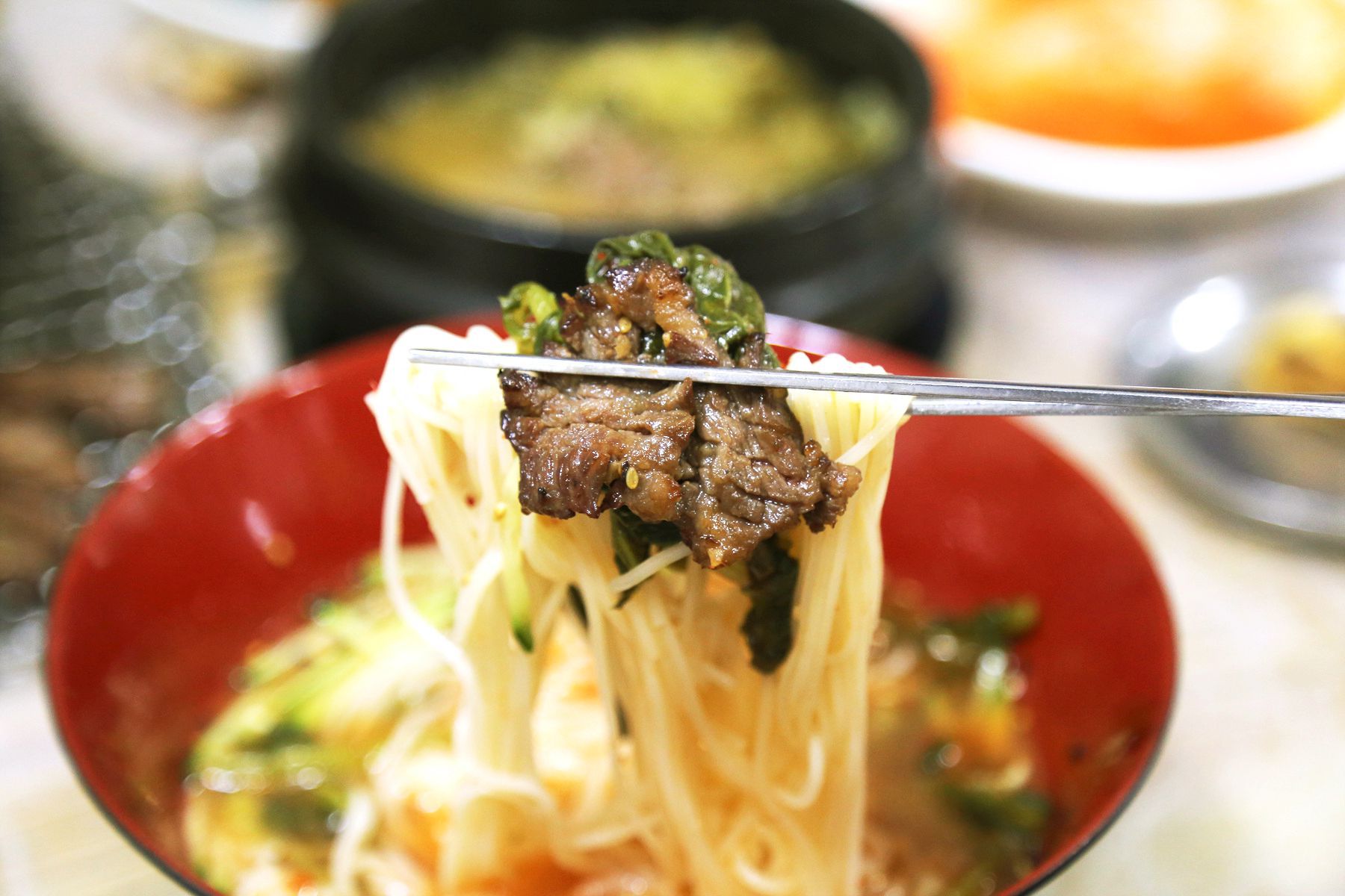 '우정숯불갈비'의 고기와 열무국수는 실과 바늘같은 느낌이 들기 충분합니다.