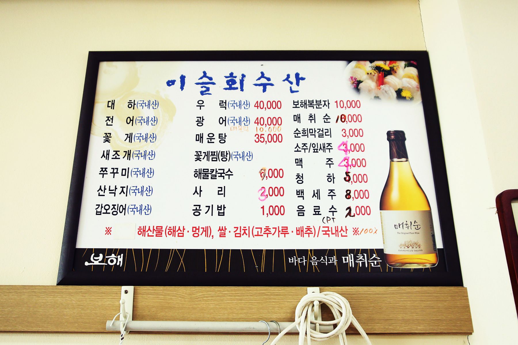 남당항 앞에 즐기한 횟집 중에서 신선도를 자랑하는 이슬회수산을 소개합니다.
