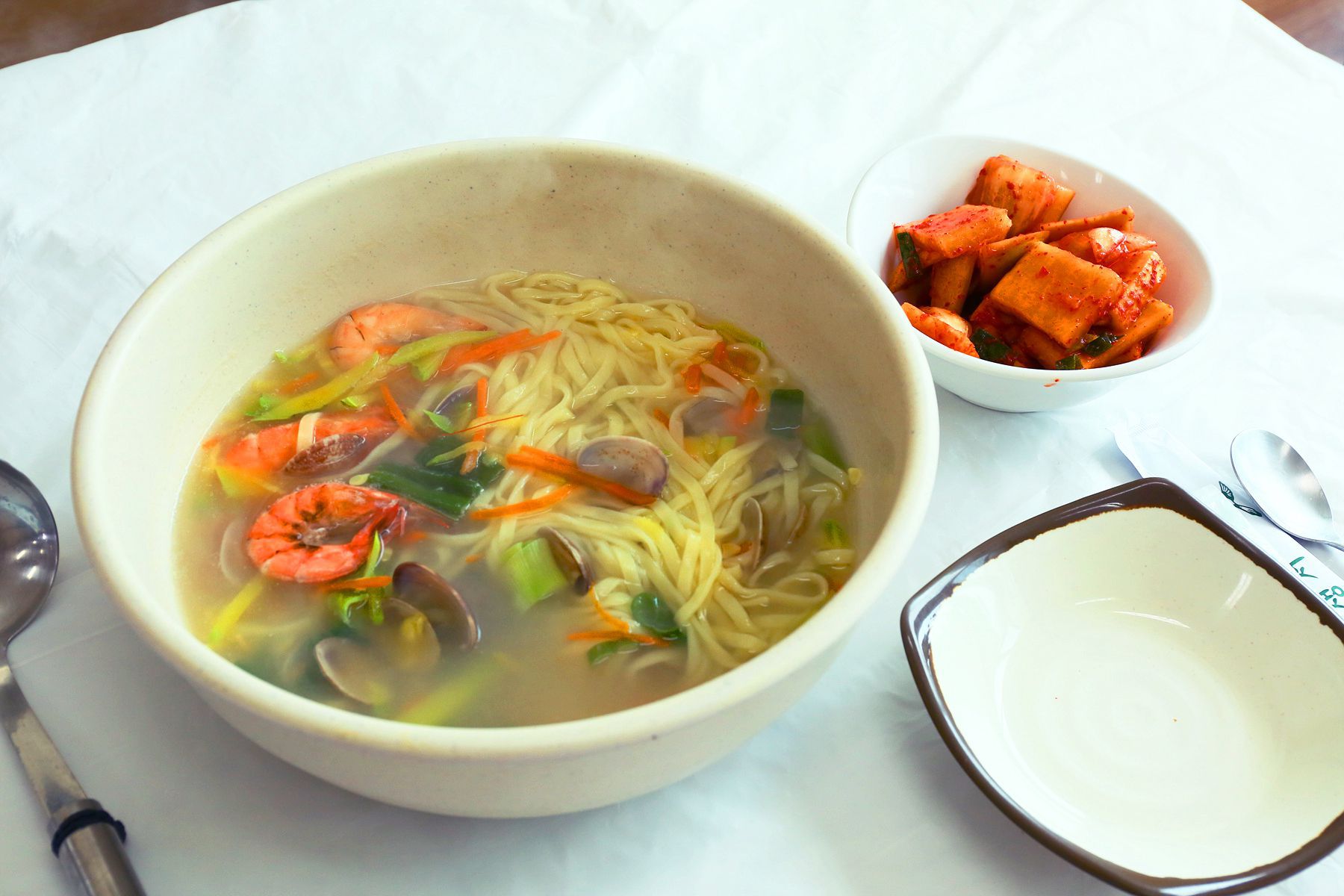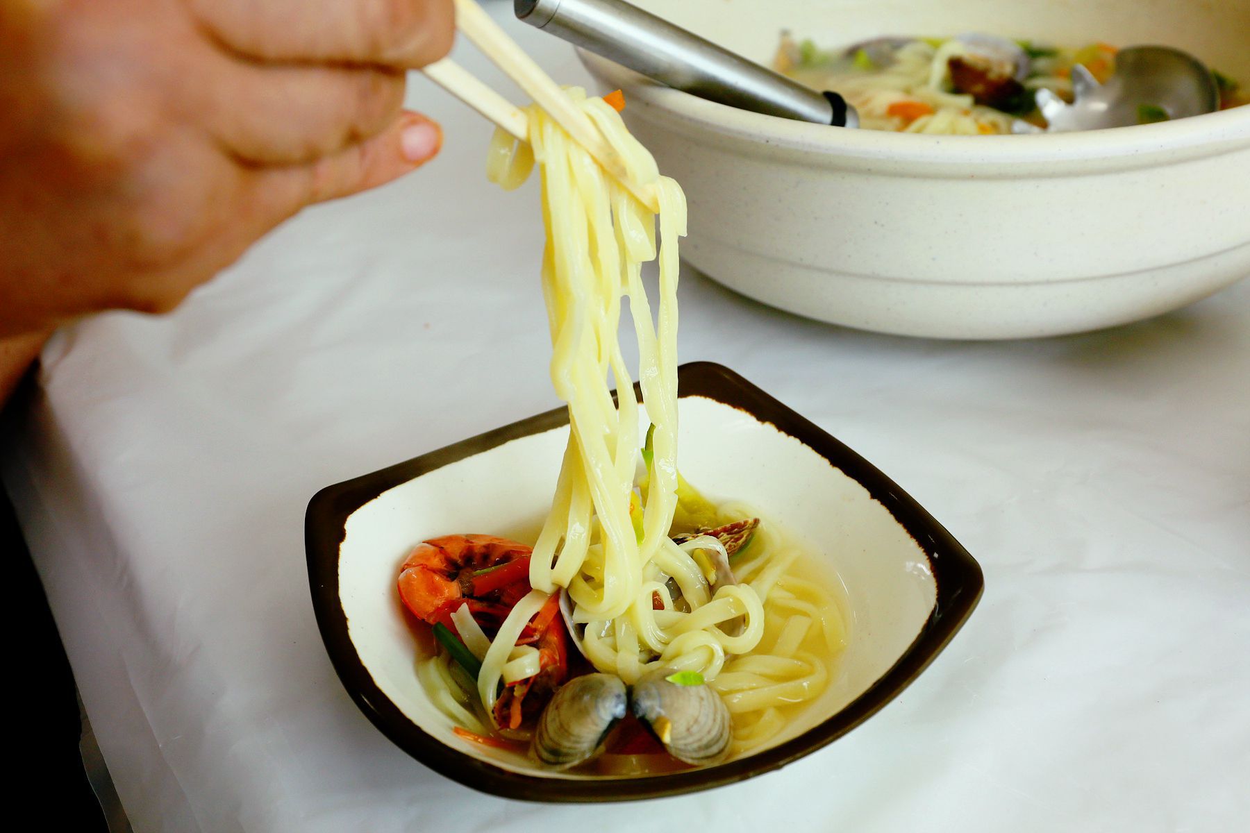 이곳의 또 다른 별미인 칼국수는 조개와 새우가 듬뿍 들어가 시원한 국물에