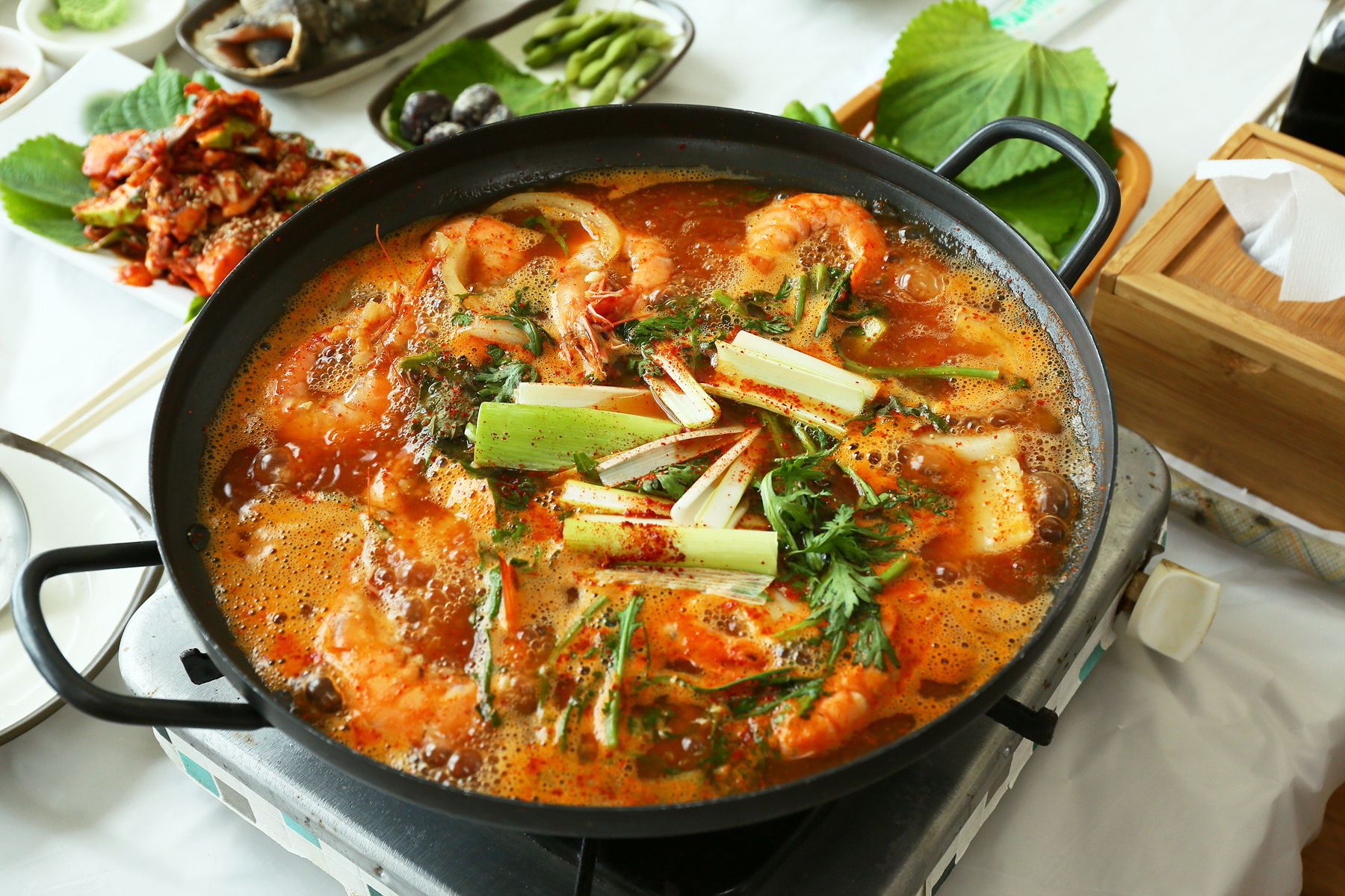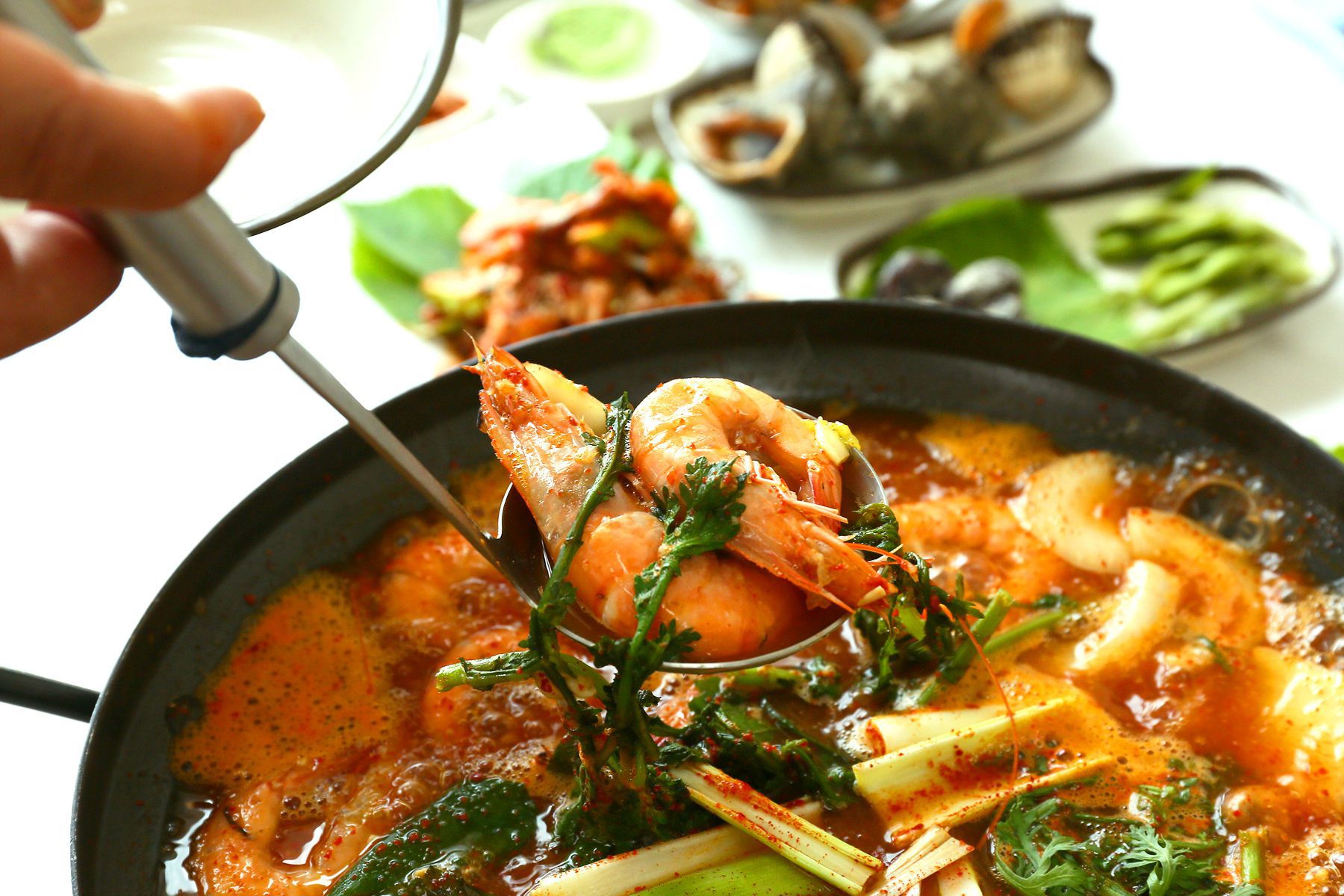 신선한 새우와 각종재료들을 넣어 팔~팔~ 끓인 새우탕은 깔끔하고 매콤한 국물이 입 안을 개운하게 하고
