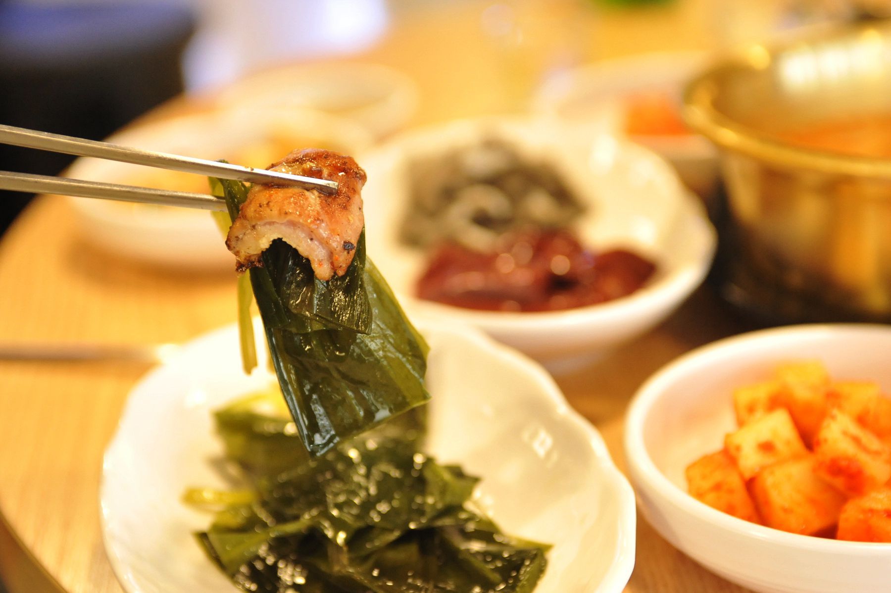 부추겉절이와 먹어도 맛있고 새콤한 명이나물에 돌돌 감아 먹으면 또 다른 별미를 느낄 수 있습니다.