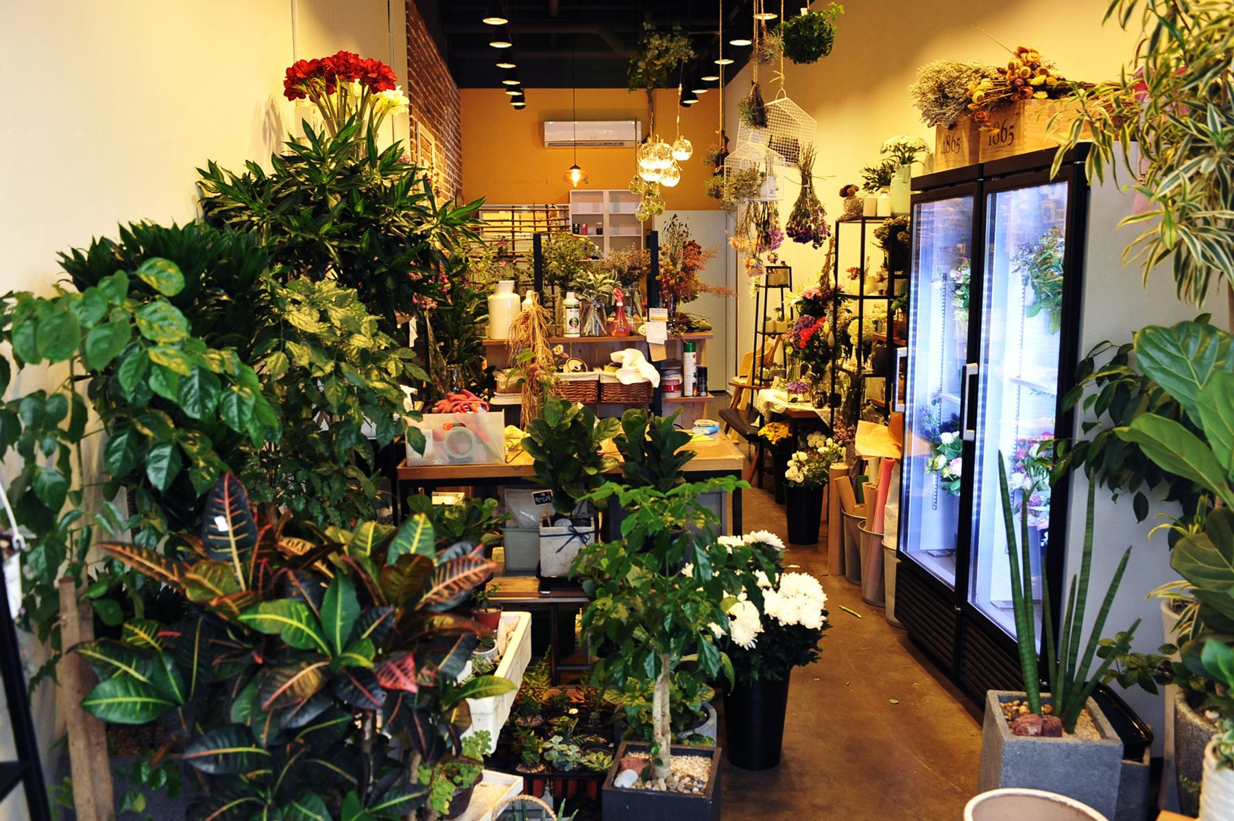 푸르른 나무와 다양한 색깔의 화사한 꽃들이 가득한 실내는