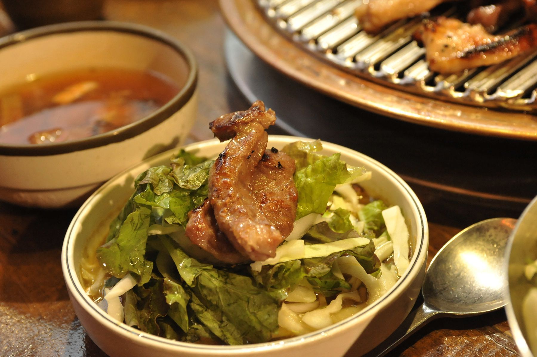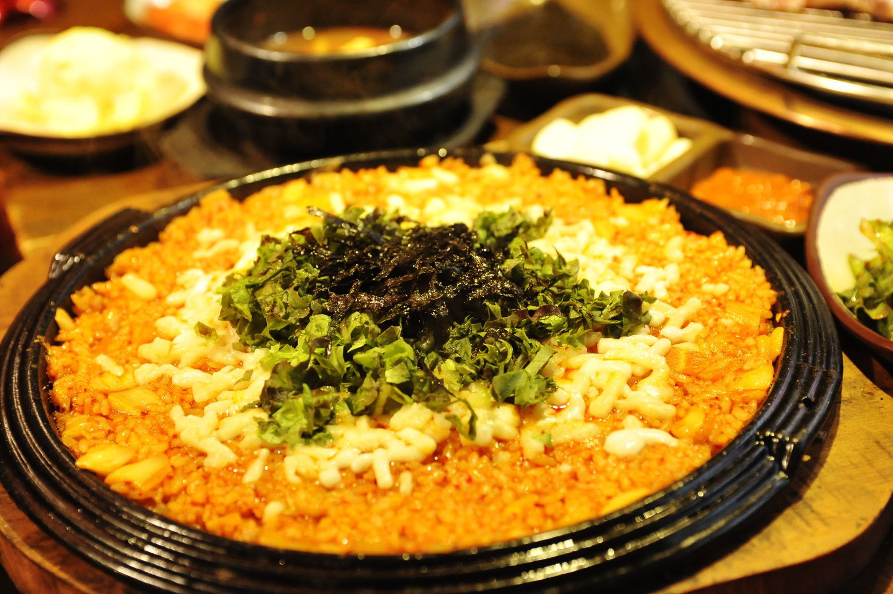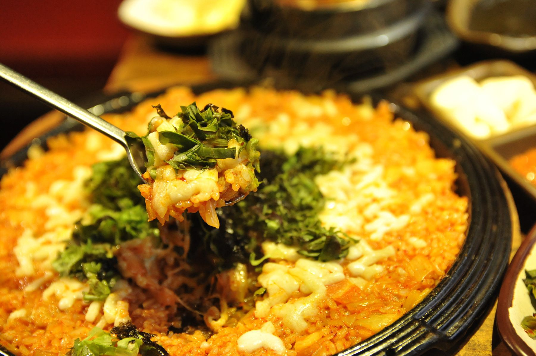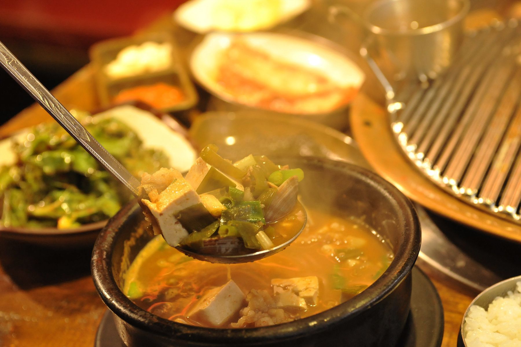 불판위에 올려 지글지글 끓여 고기를 찍어 먹는 맛이 깊이가 있고 감칠맛이 느껴집니다.