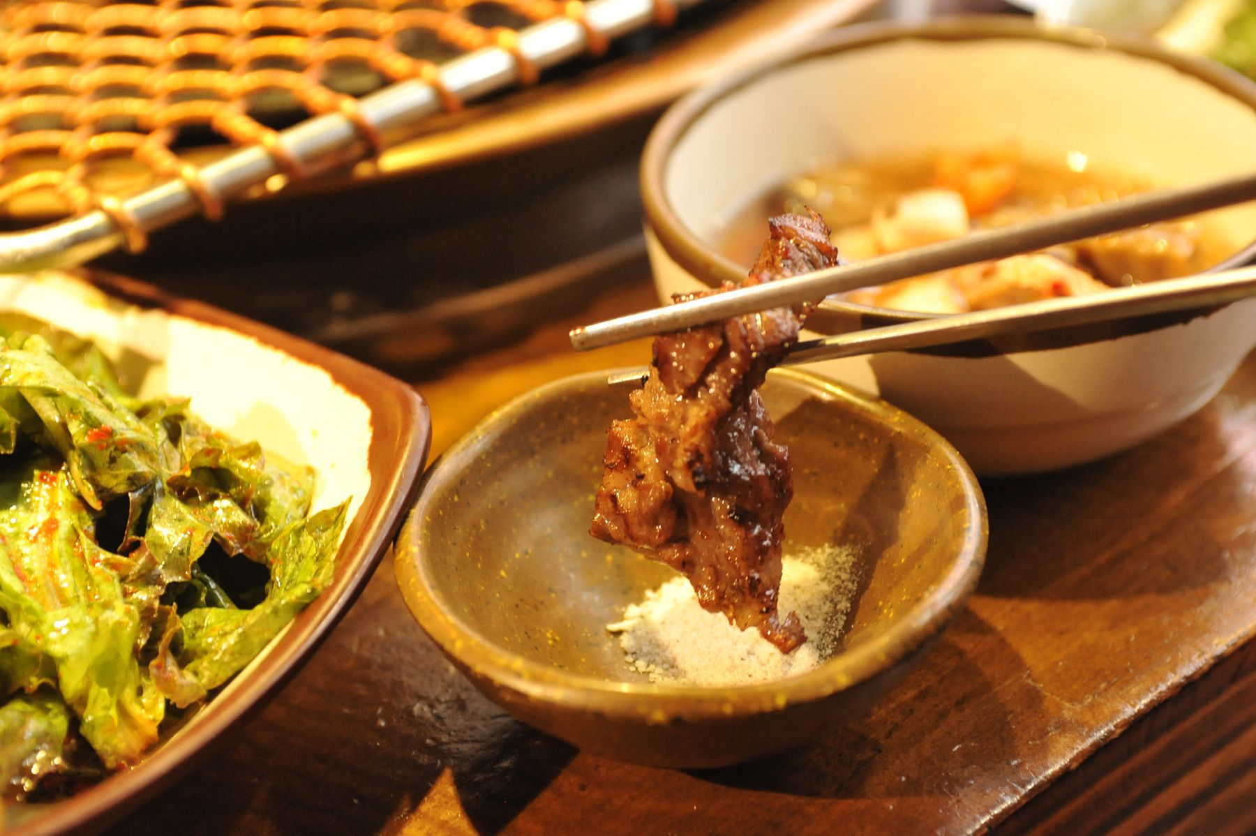 고기를 주문하면 나오는 멜젓소스는 통멸치를 달여서 만든 소스로
