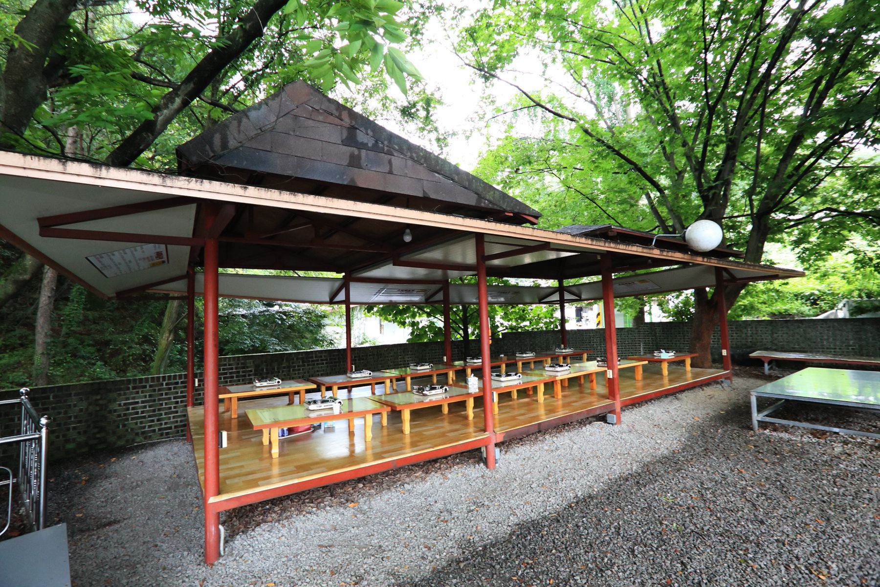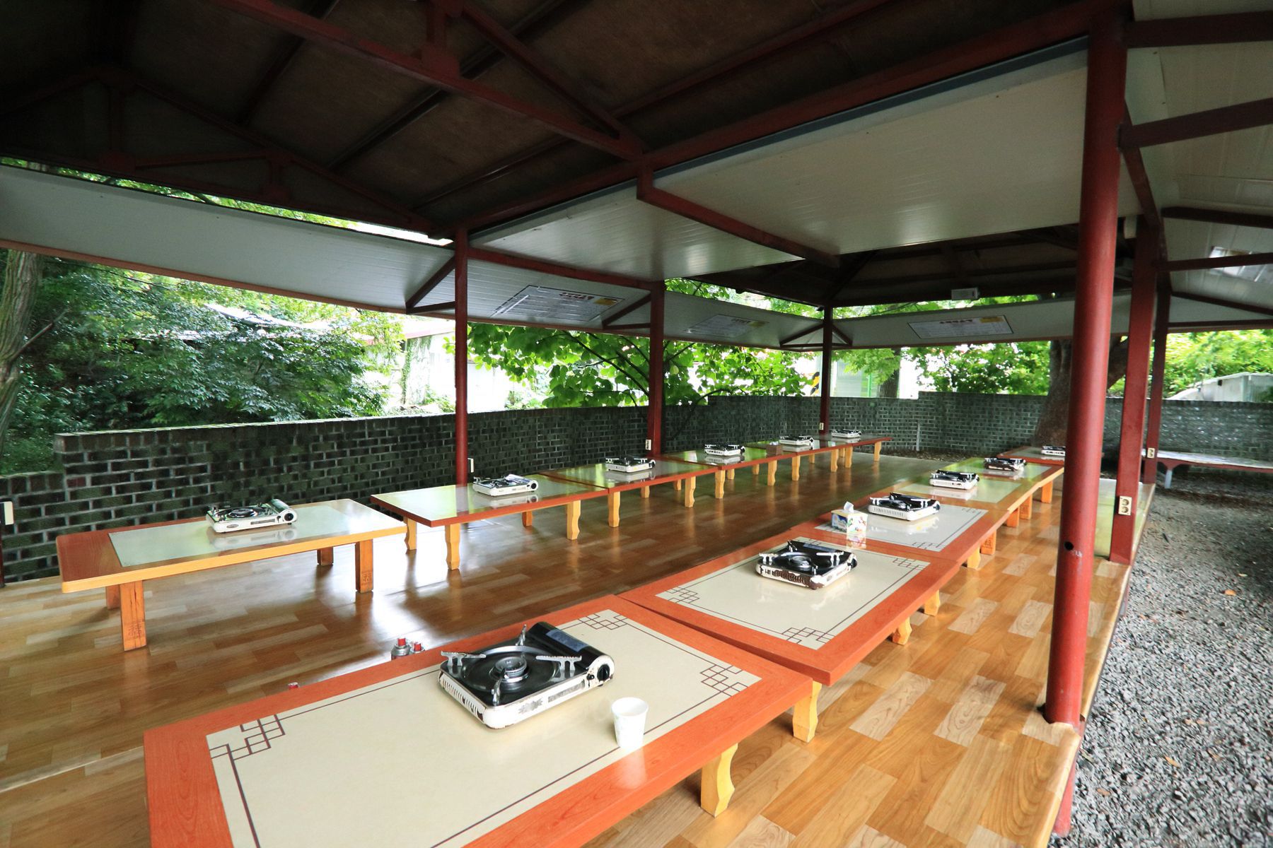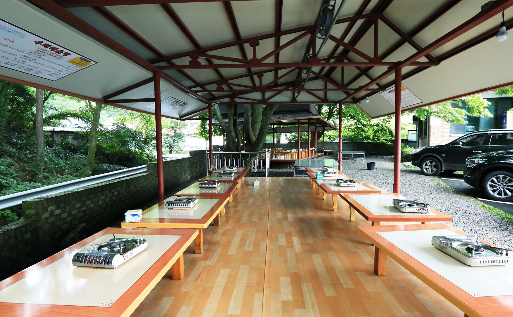 이곳에는 깔끔하고 넓직한 실내뿐만아니라 주변의 아름다운 경치를 바라보며 맛있는 식사를 즐길 수 있는 넓은 평상자리도 마련되어 있어