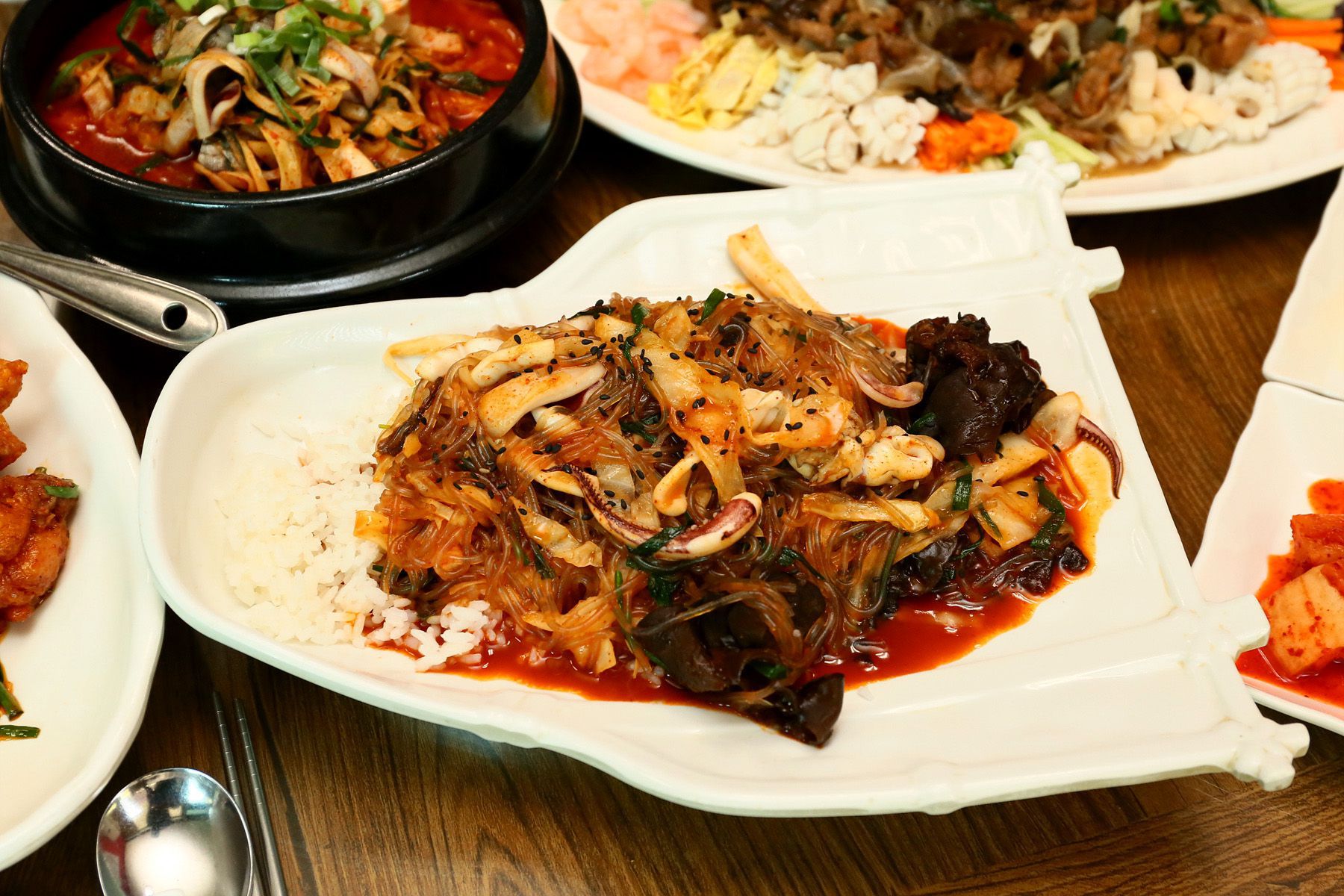 오징어잡채밥은 쫄깃한 오징어와 잡채를 밥과 함께 쓱쓱 비벼 먹으면 그맛이 밥도둑이 따로 없을 정도로 맛있어