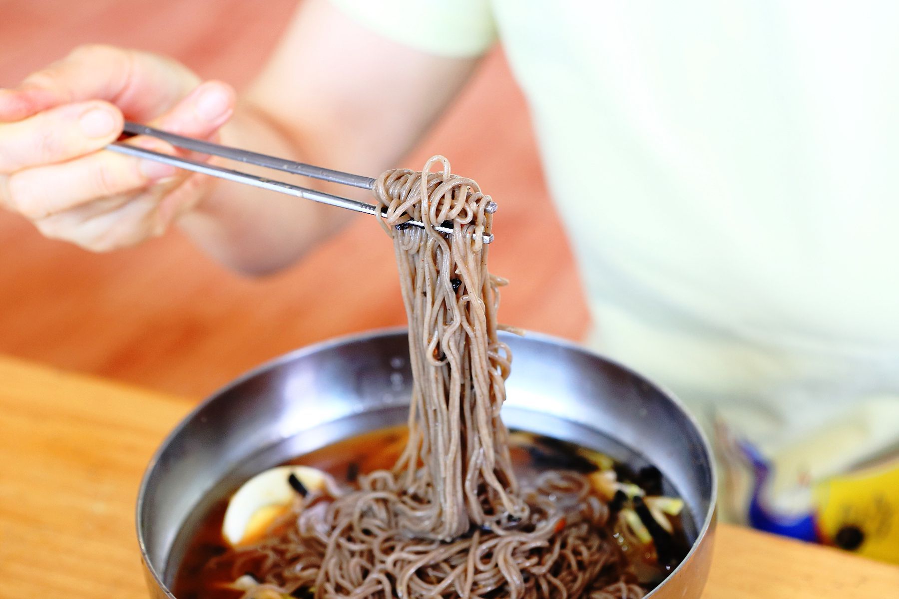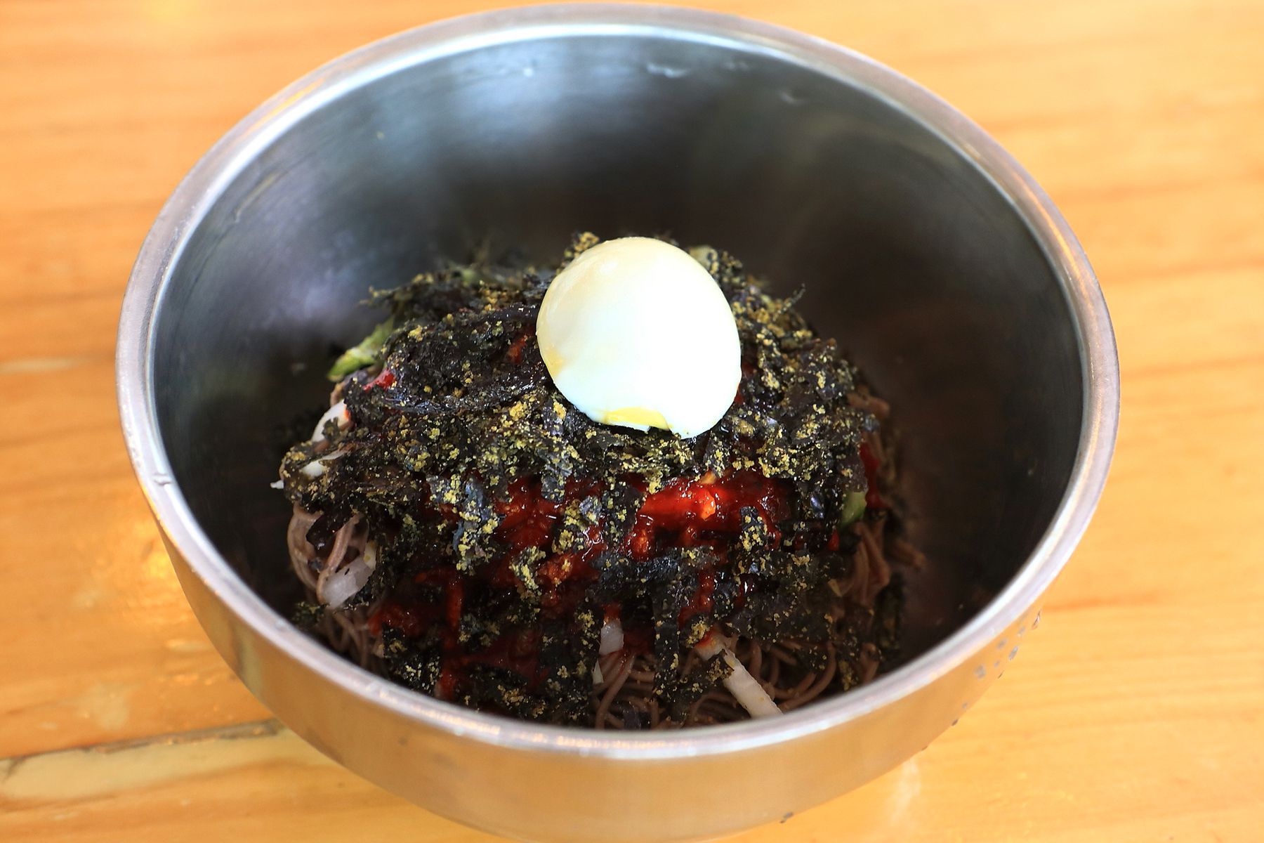 매콤한 감칠맛이 더해져 끊을 수없는 매력적인 맛을 가진 비빔막국수