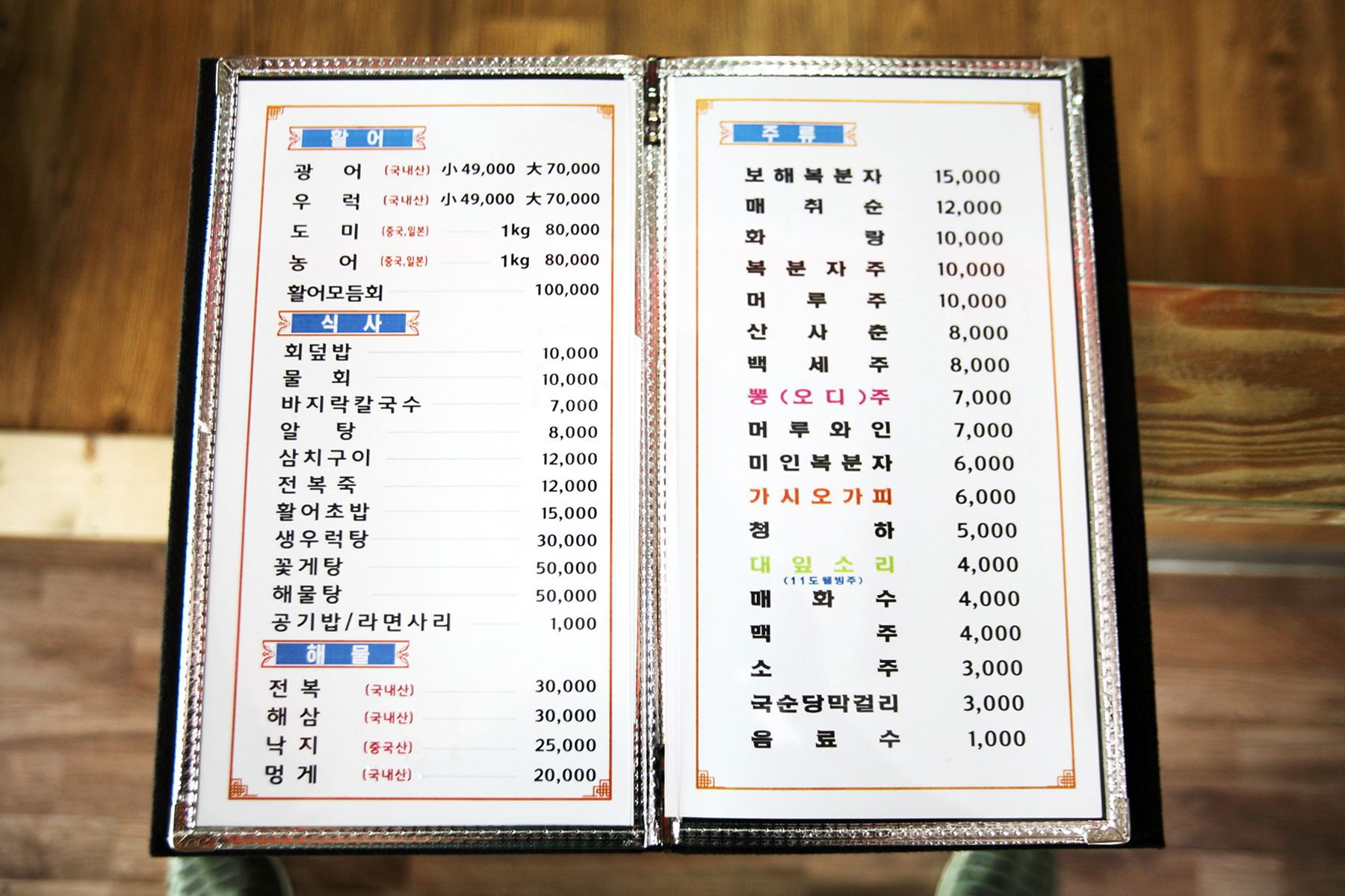 활어 700g 49,000원, 농어/도미 kg당 80,000원인 착한 가격으로 맛보실 수 있습니다.