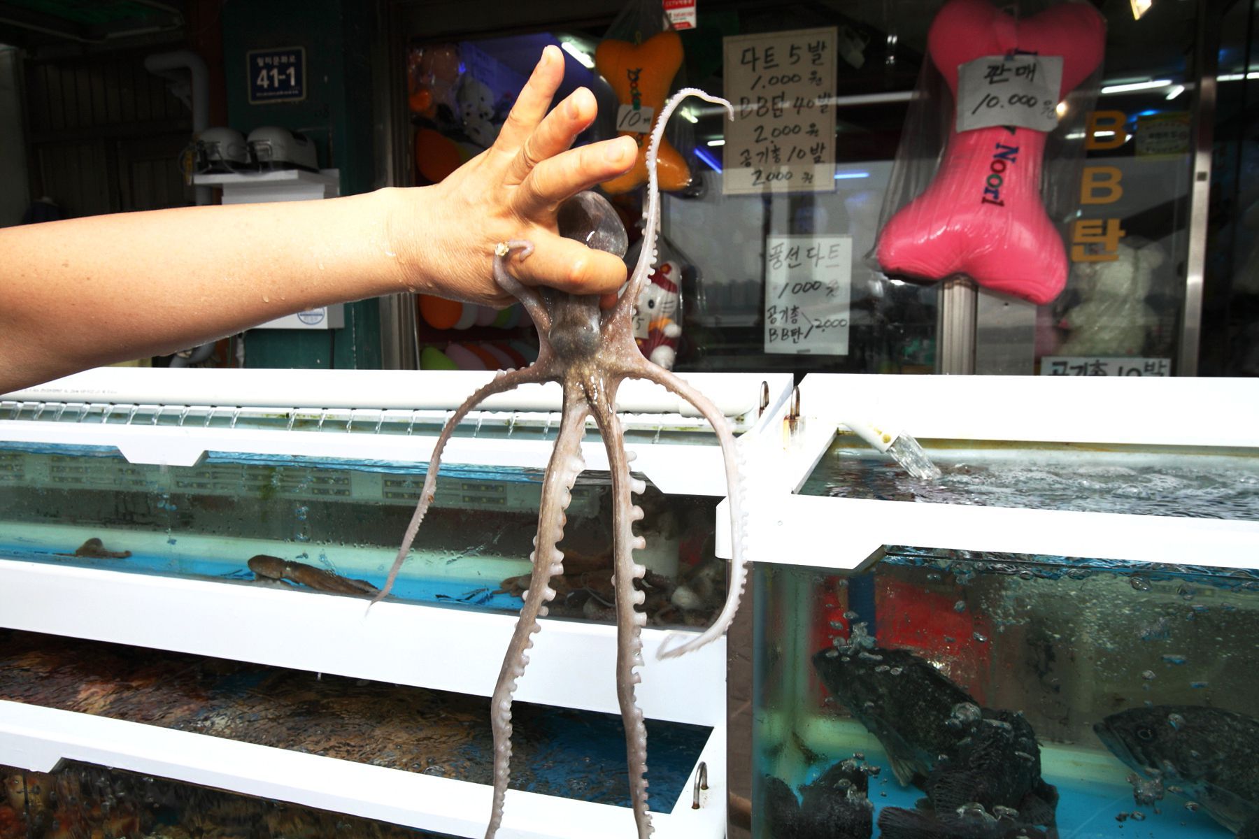 수족관에서 바로 건져올려 손님앞에서 생물로 키로수를 재어서 제공하는 회이므로