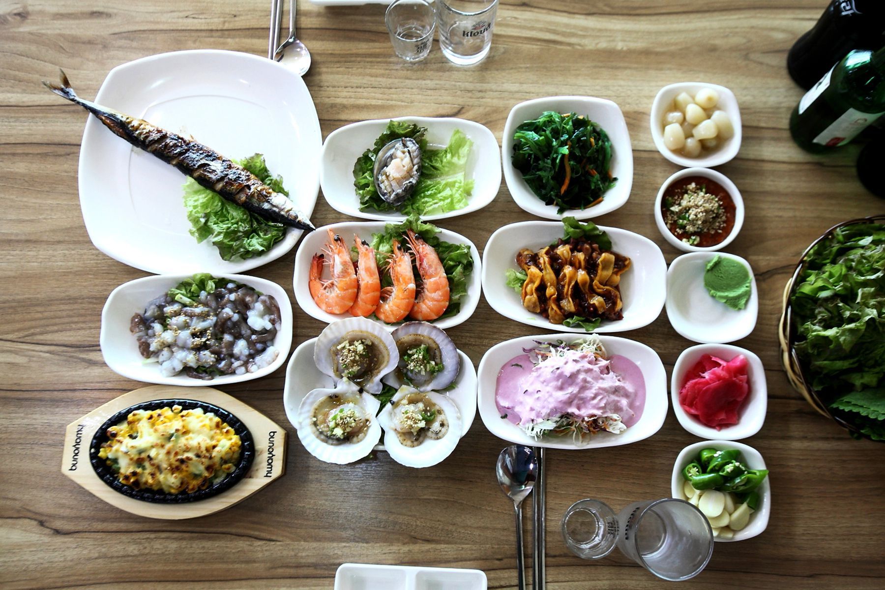 싱싱한 회와 푸짐한 스끼다시로 입맛 제대로 당기는 회상차림입니다.
