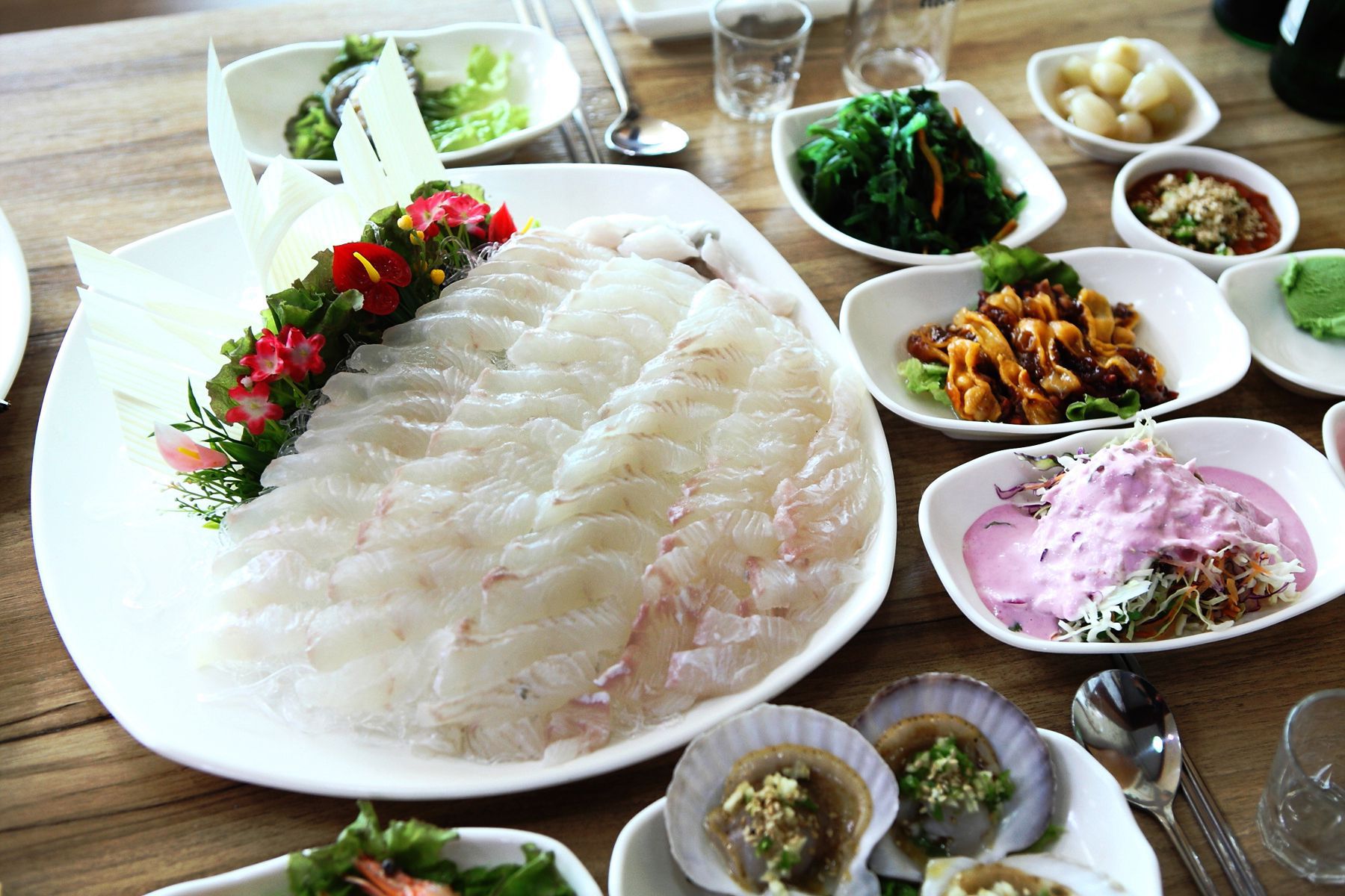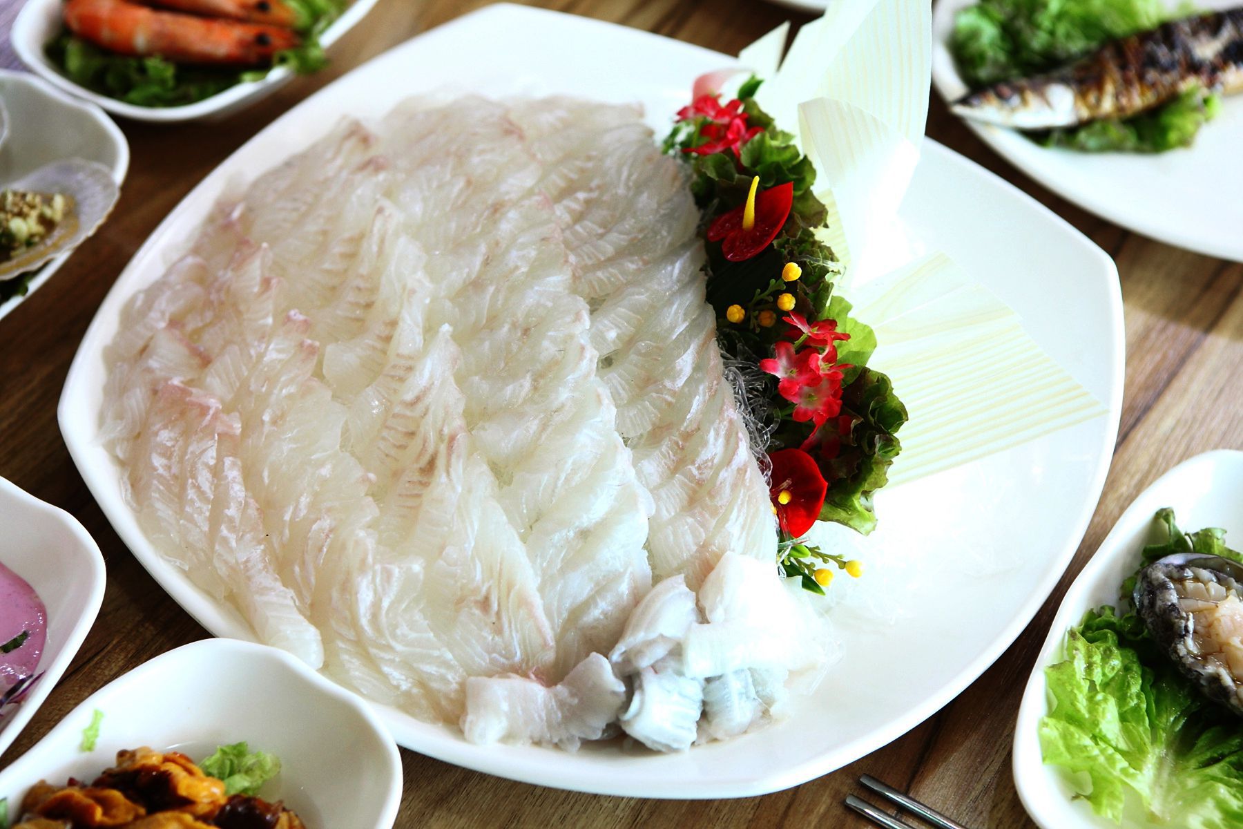 정확한 양을 푸짐하게 드실 수 있으며 씹을수록 고소한 싱싱한 활어회를 즐기실 수 있습니다.