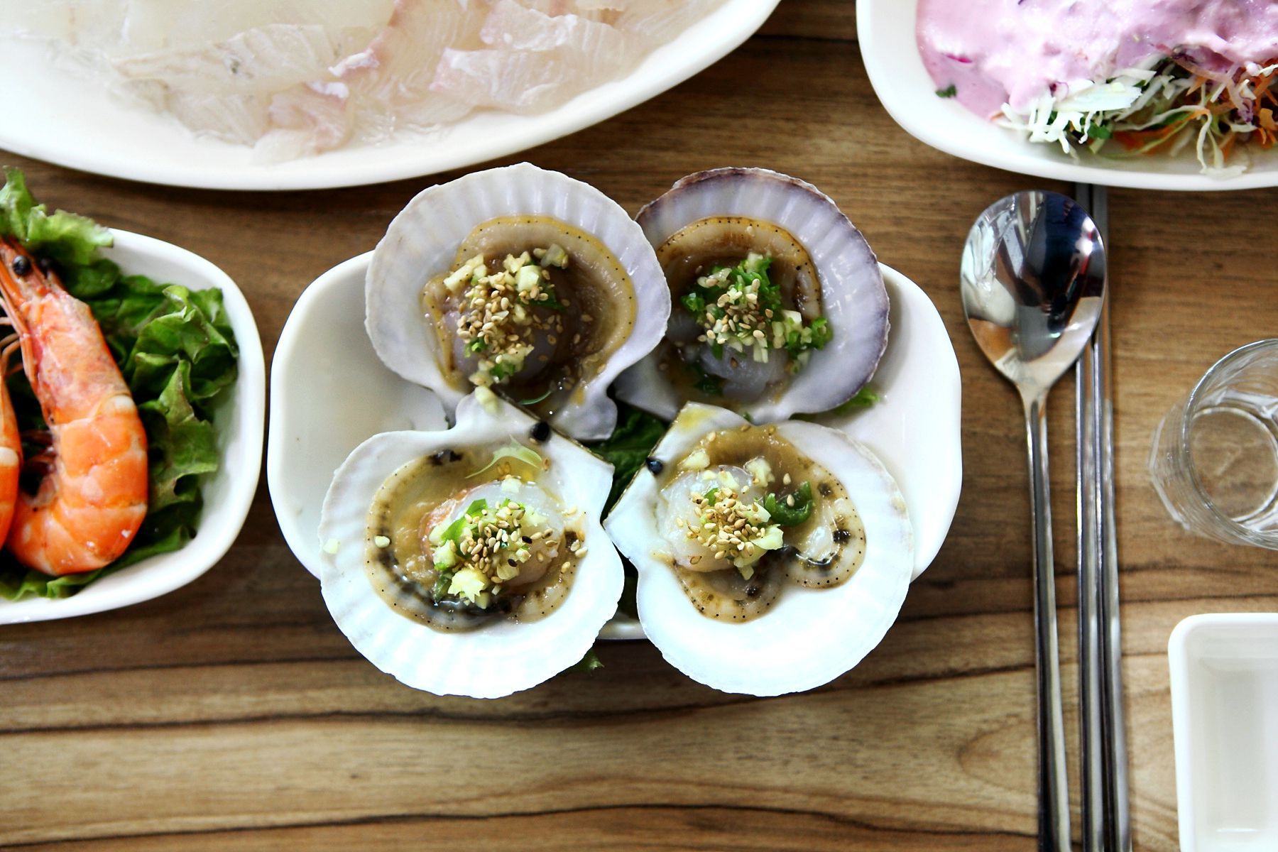 저렴하지만 해산물은 냉동을 사용하지 않고 생물만 사용하는 곳이라 월미도에서 인기많은 횟집이며
