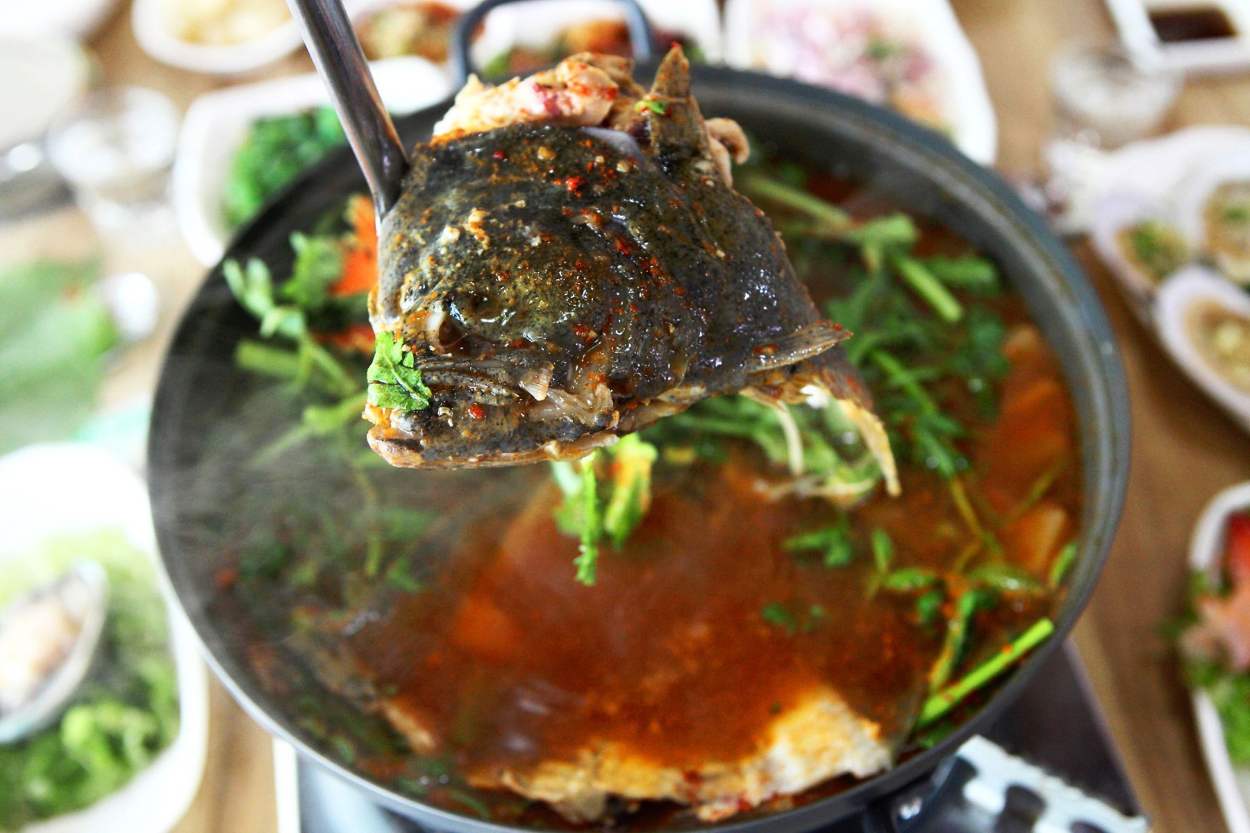 싱싱한 생선과 야채로 담백하면서 칼칼하고 깔끔한 맛을 지닌 매운탕입니다.