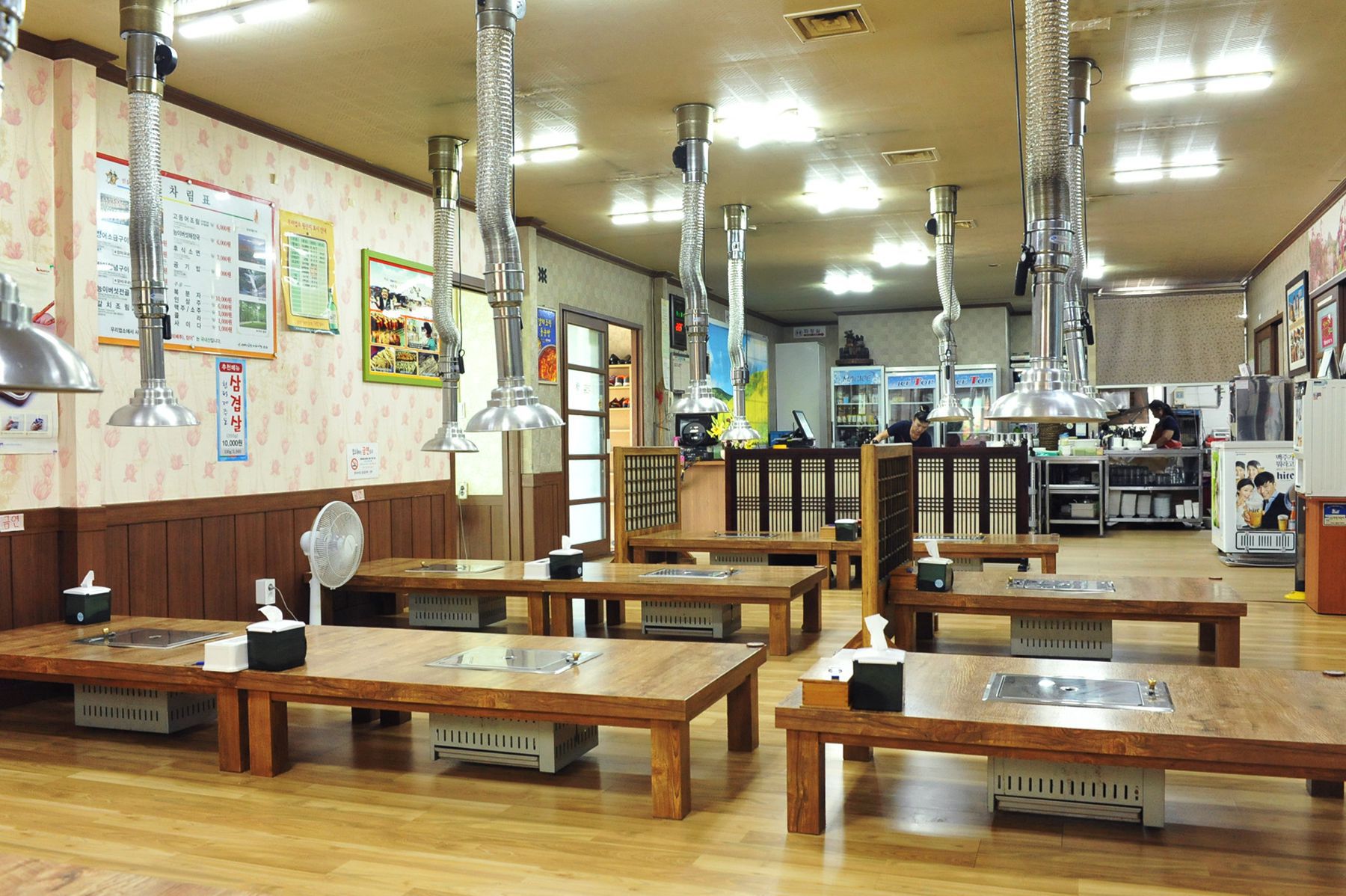 크고 넓은 실내에는 환기시설도 잘 갖추어져 있어 쾌적한 환경에서 식사를 하실 수 있습니다.