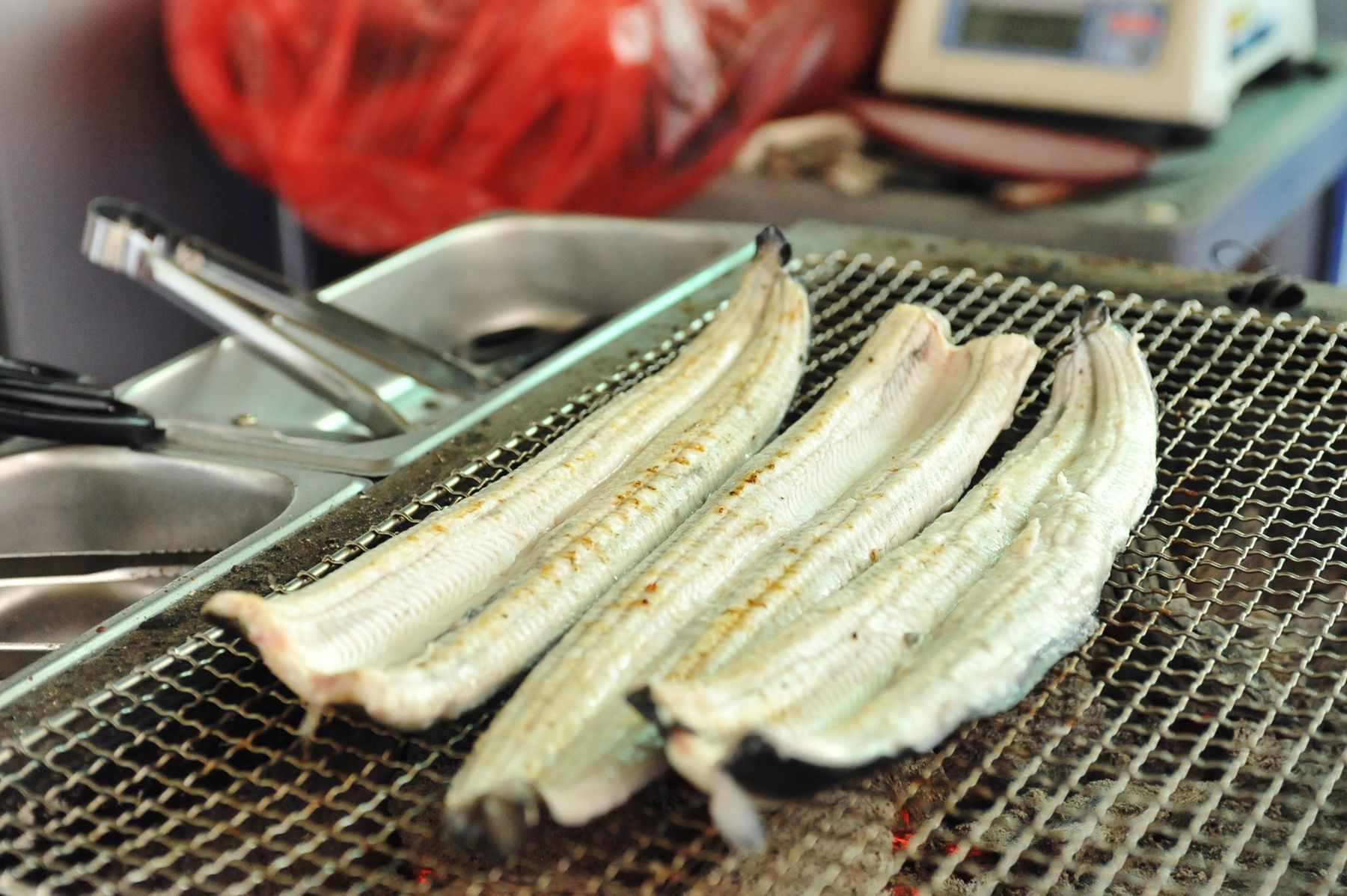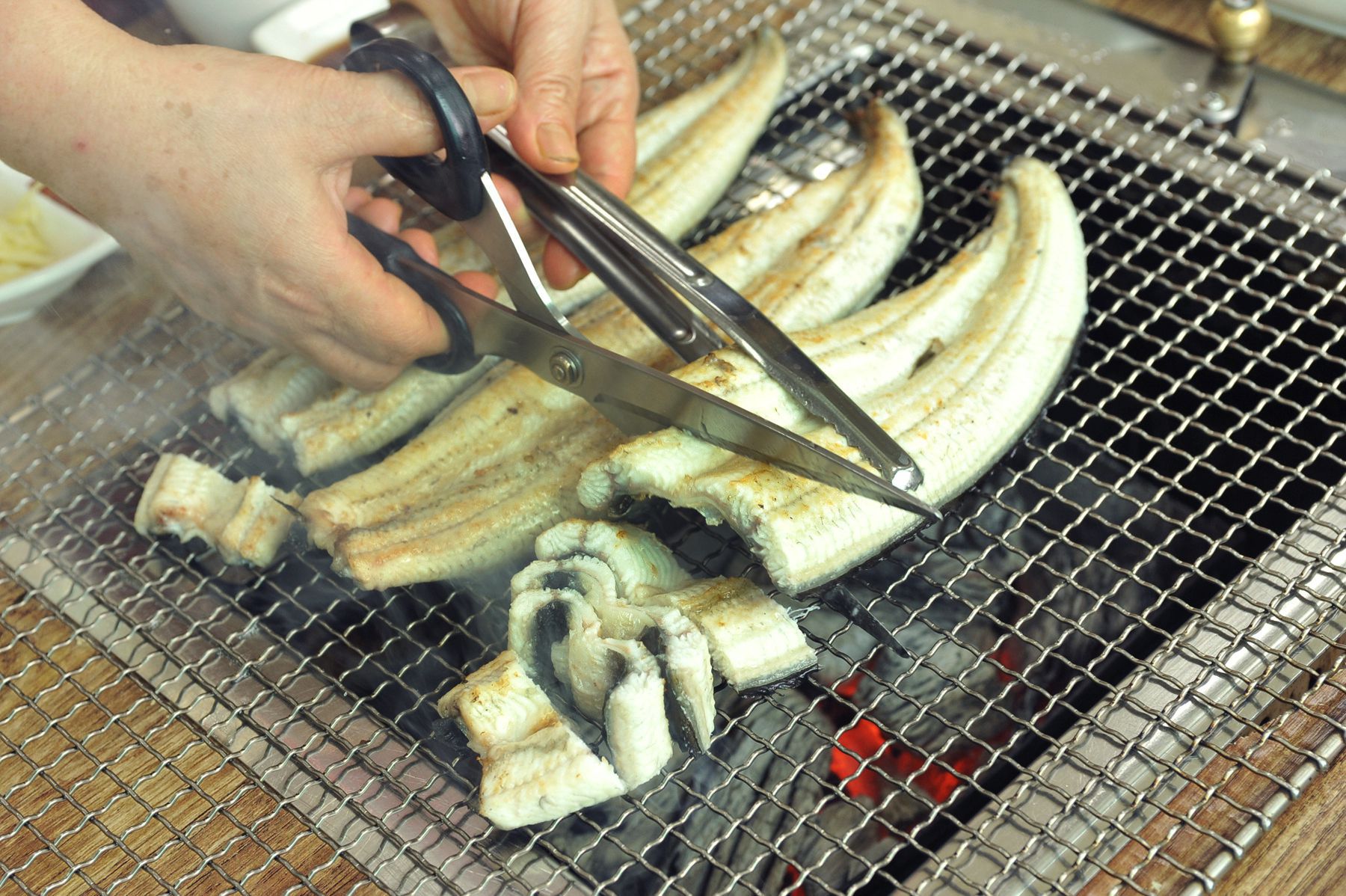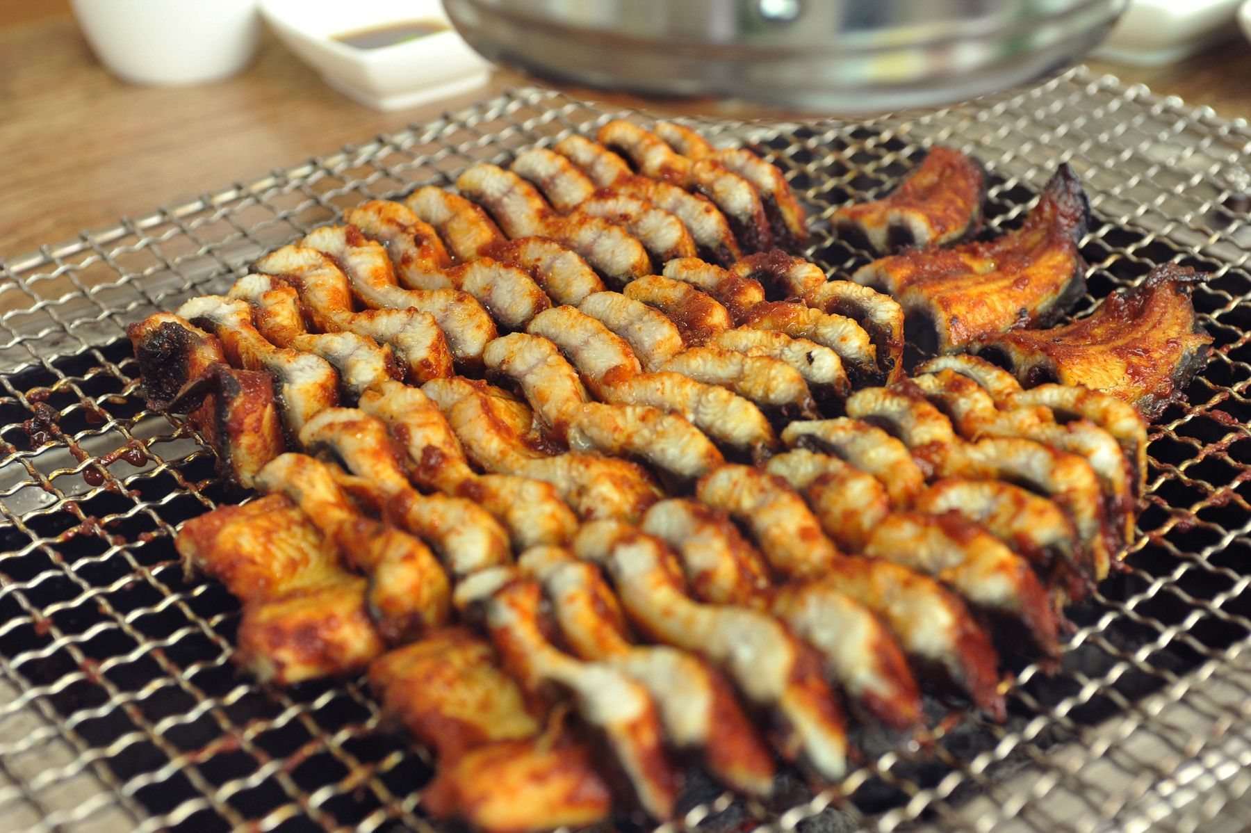 인삼장어백탄구이에서는 국내산 민물장어만을 사용하고 거기에 질좋은 백탄만을 사용하여