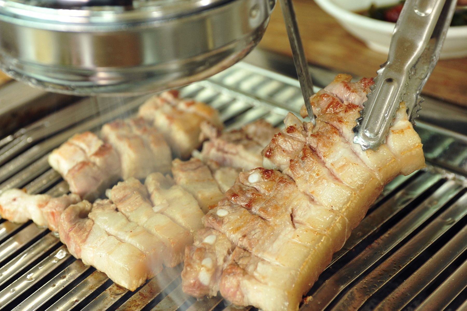가장 맛있는 두께로 썰어 나온 삼겹살은 속까지 숯향이 베여 육즙가득 머금은 상태로 즐기실 수 있도록 칼집을 넣어 최상의 맛으로 드실 수 있습니다.