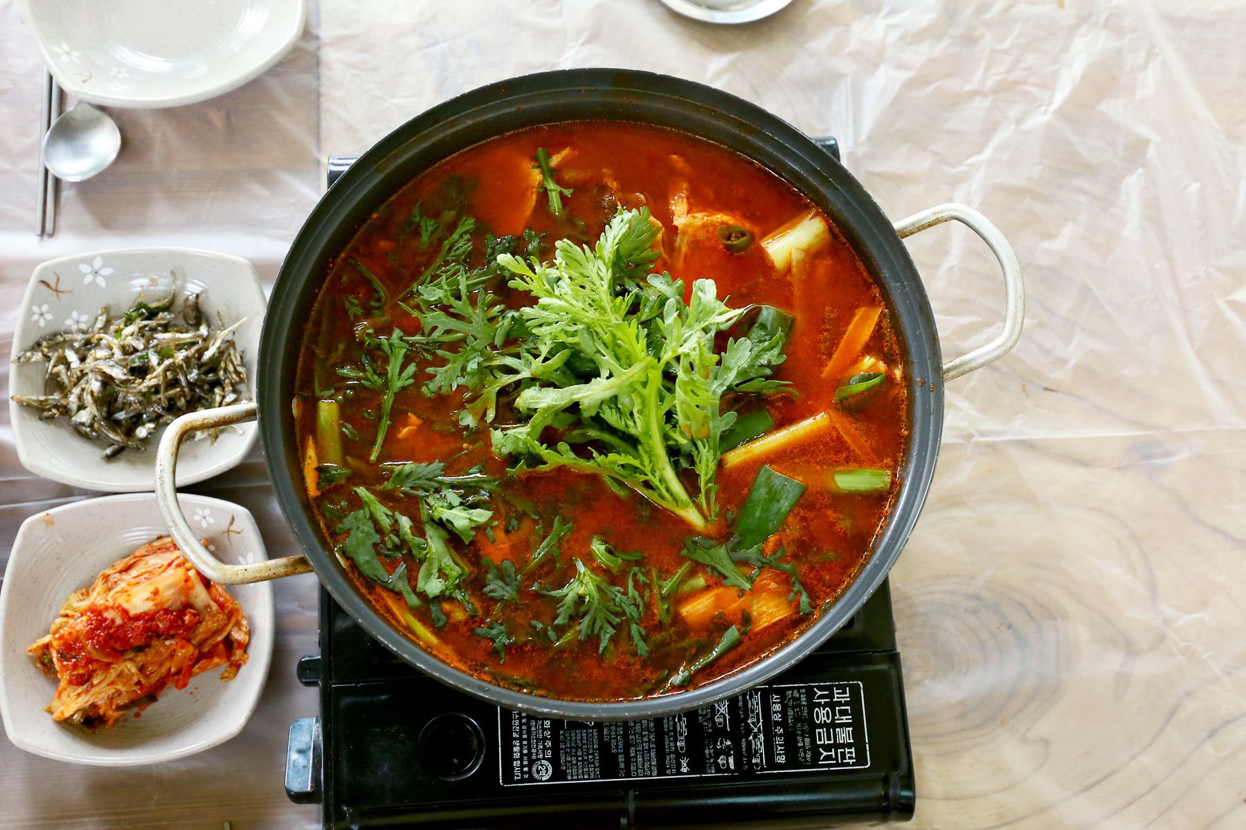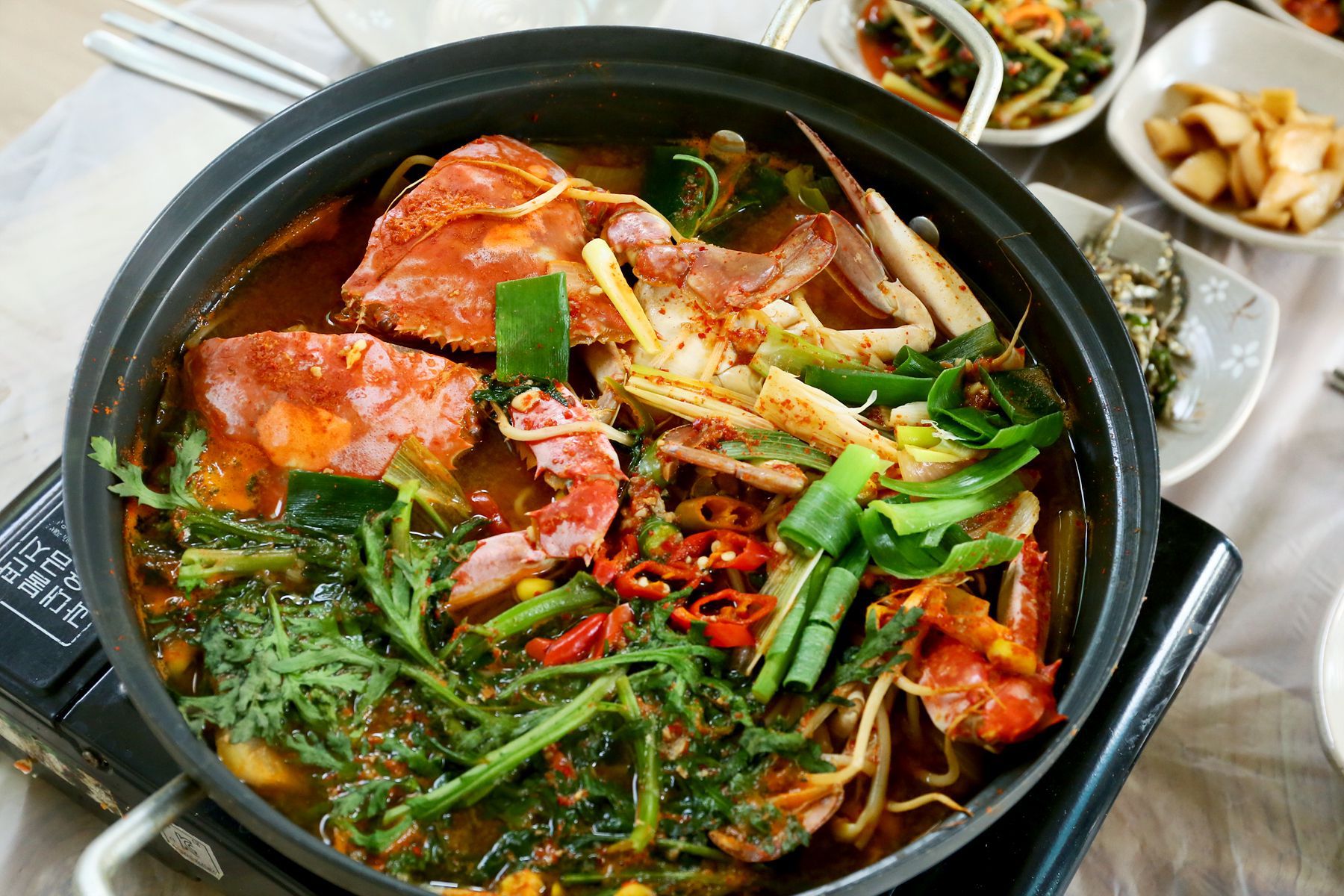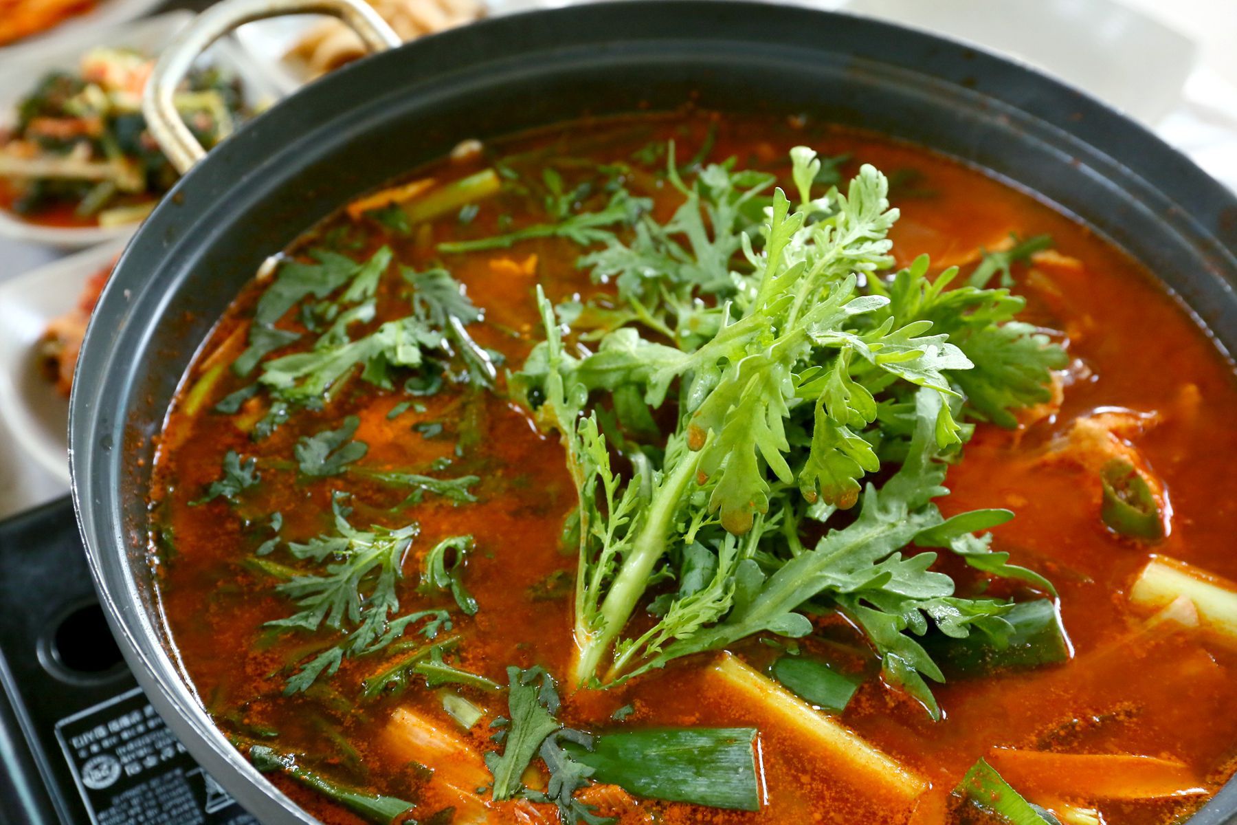 쑷갓이 들어가 향긋하니 시원한 맛이 일품인 꽃게탕은 싫어하시는 분이 없을만큼