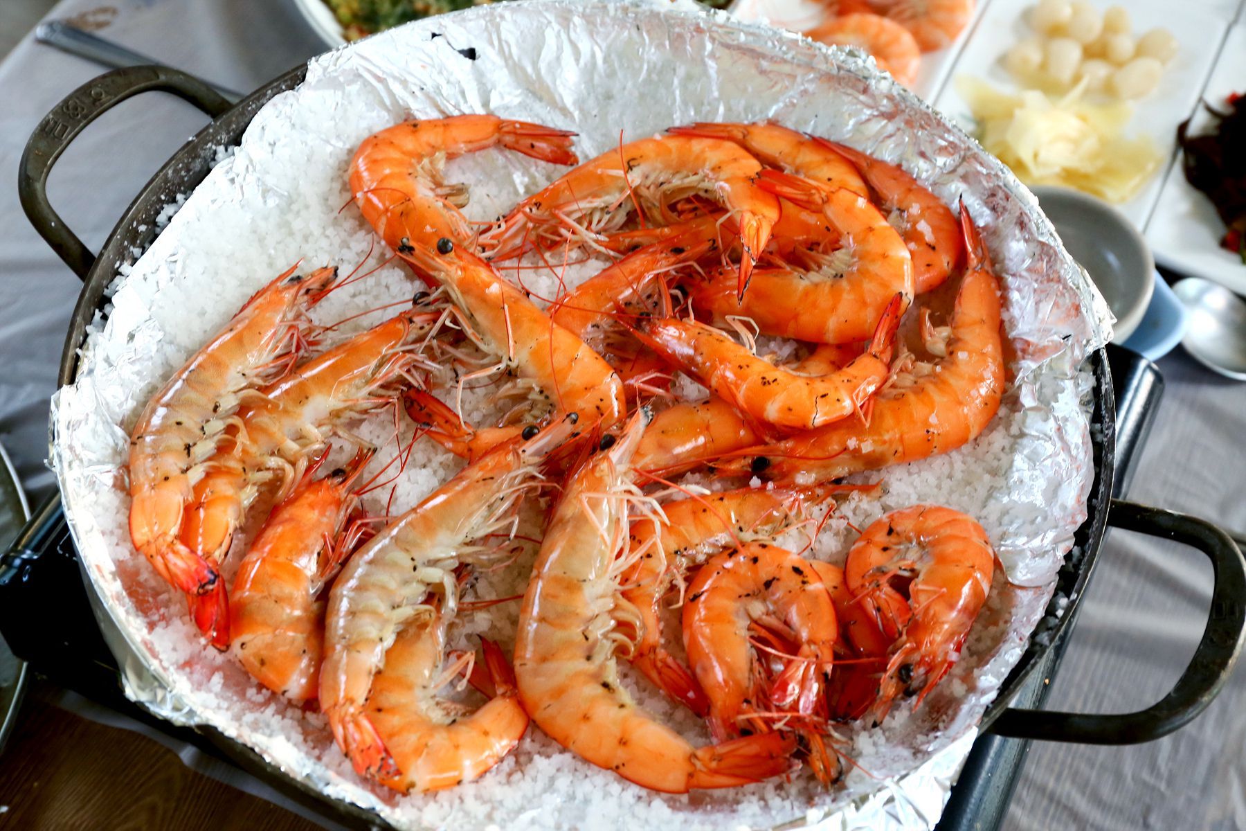 싱싱한 새우를 소금에 올려 구어 정말 맛있게 먹을수 있는 대하구이는 어린아이부터 어른까지 누구나 좋아하는 맛으로
