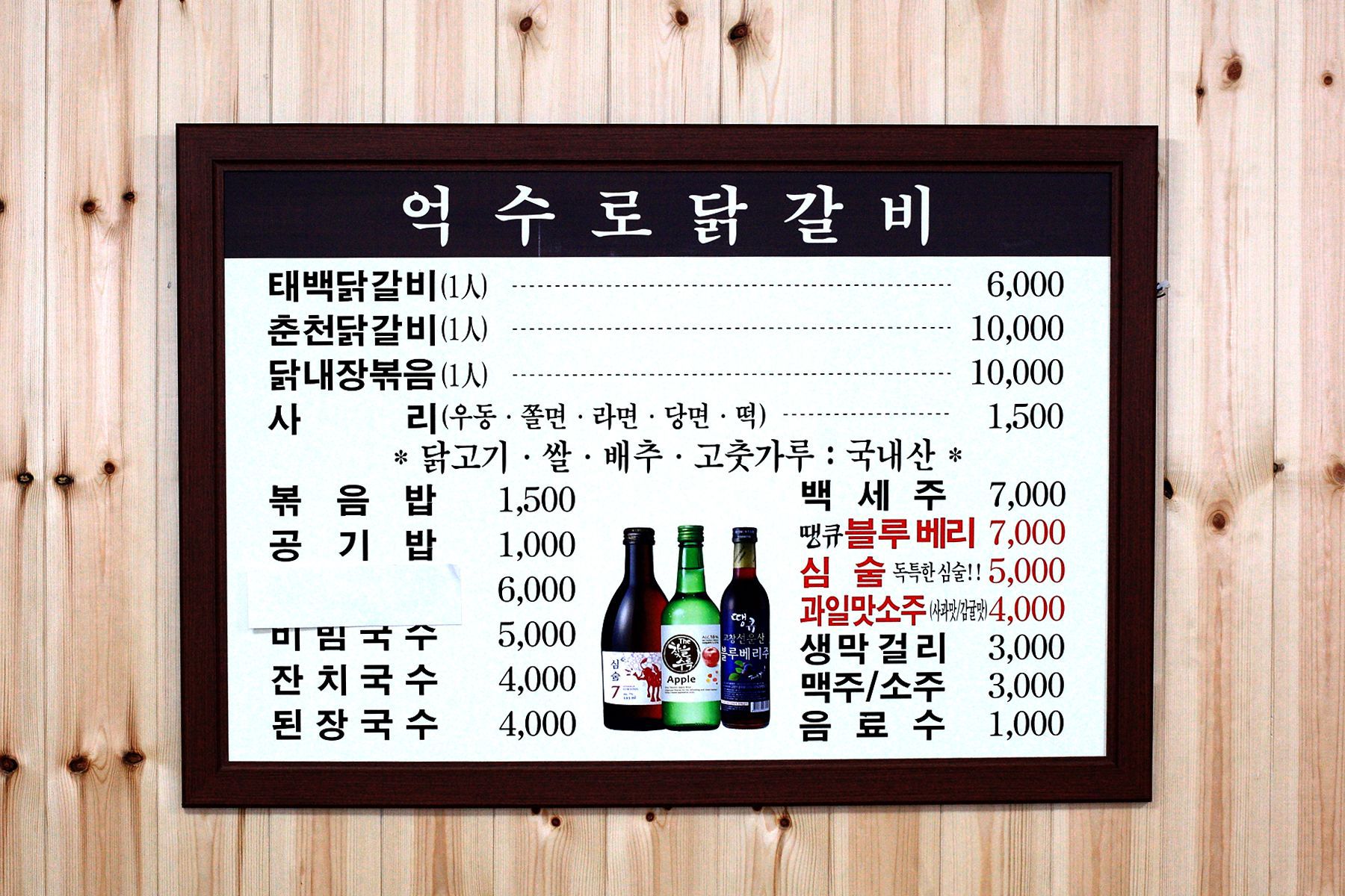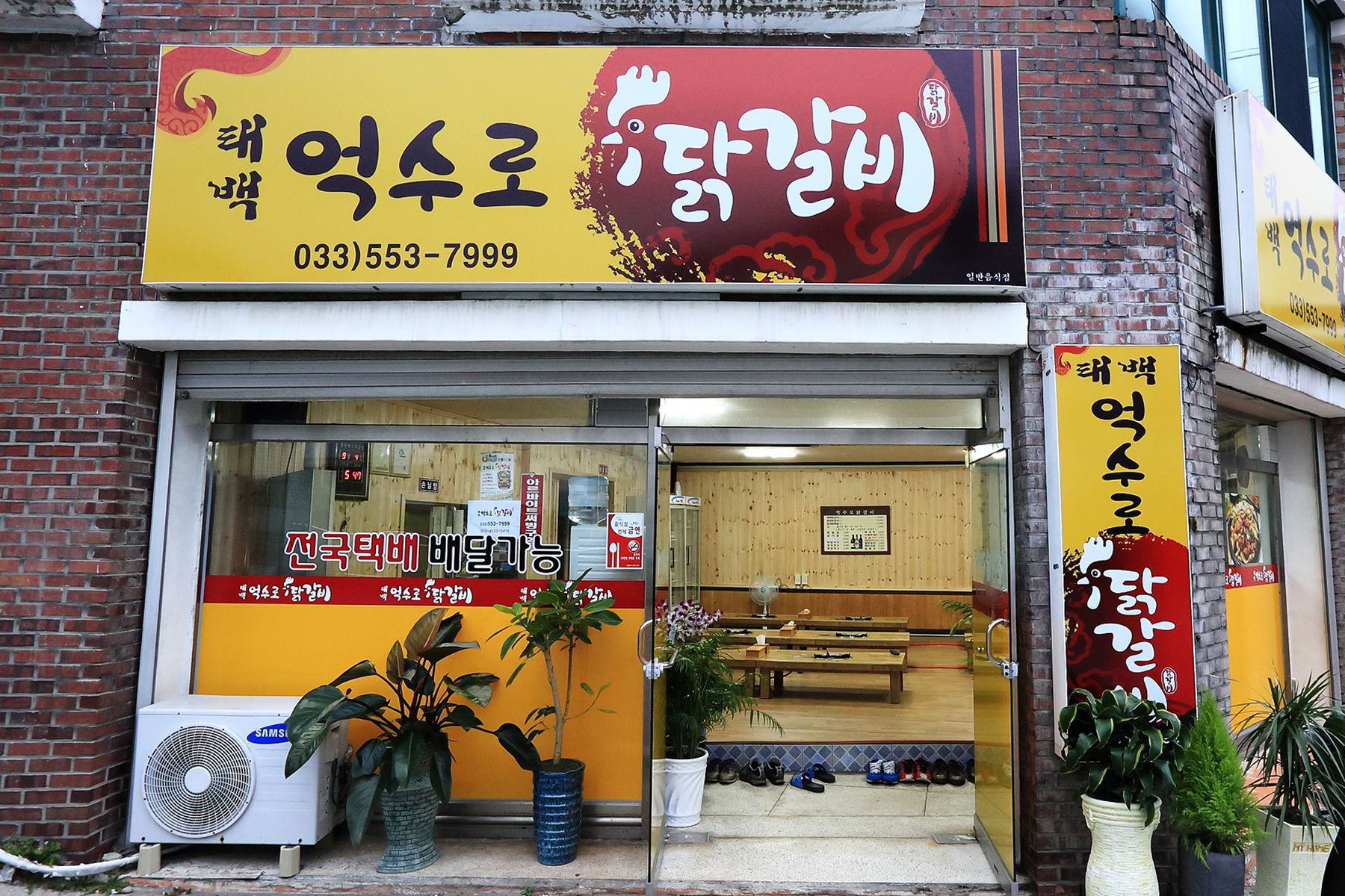 강원도 태백의 유명한 물닭갈비를 제대로 드실 수 있는 '태백억수로닭갈비' 입니다.