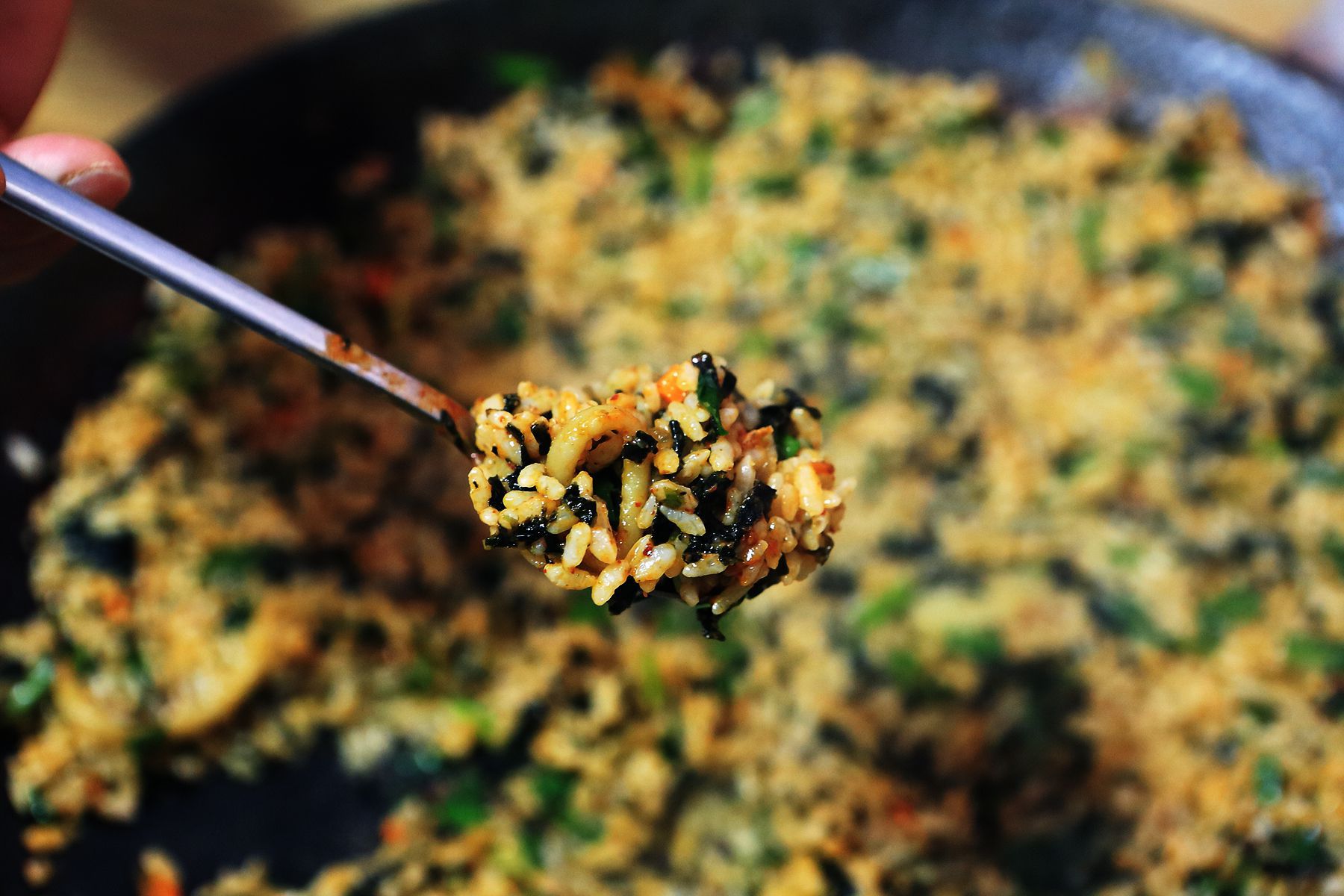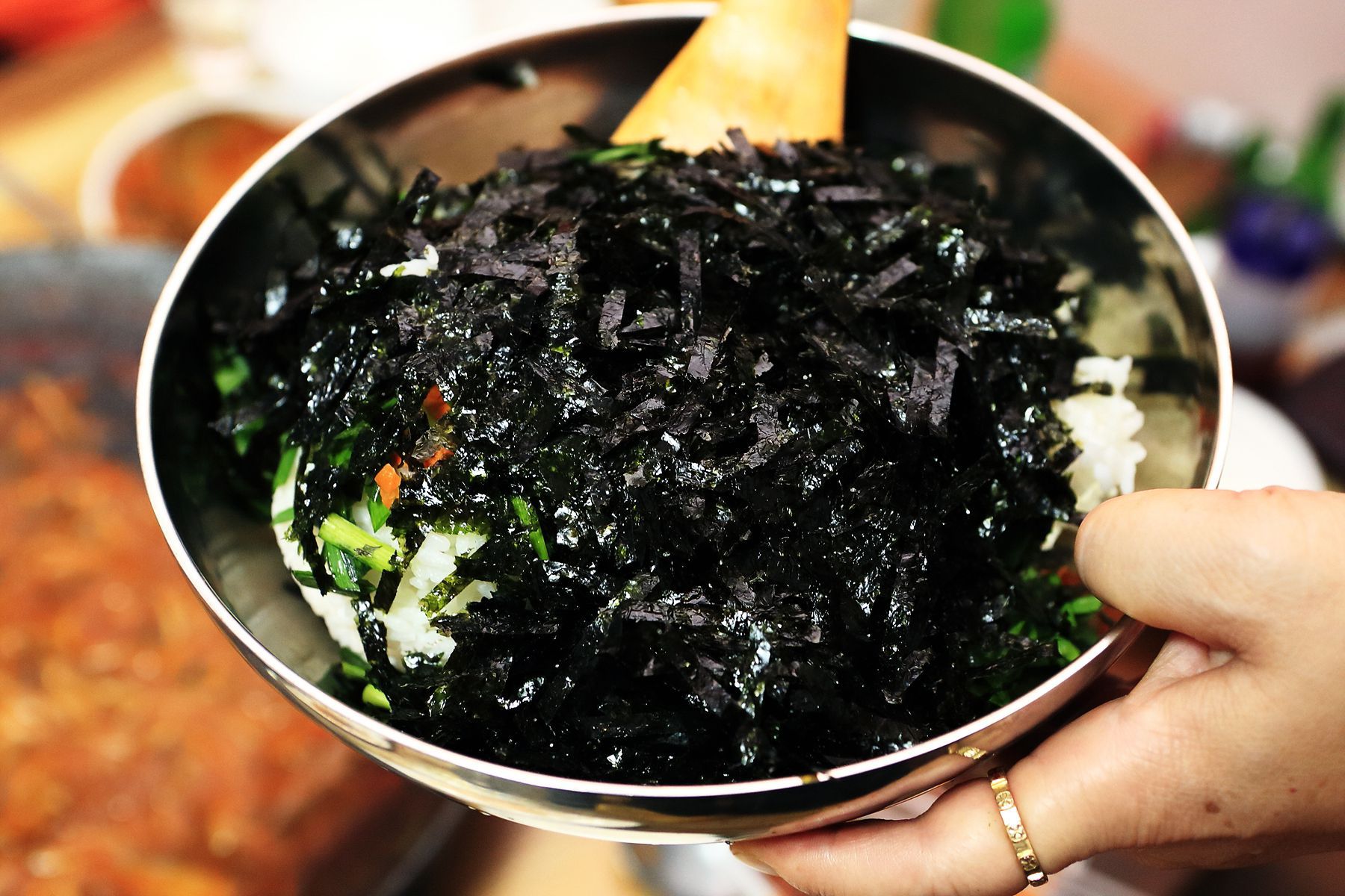 향긋한 부추와 야채를 듬뿍 넣어 고소한 김가루까지 솔솔 뿌려 먹으면 이또한 별미로 즐기실 수 있습니다.