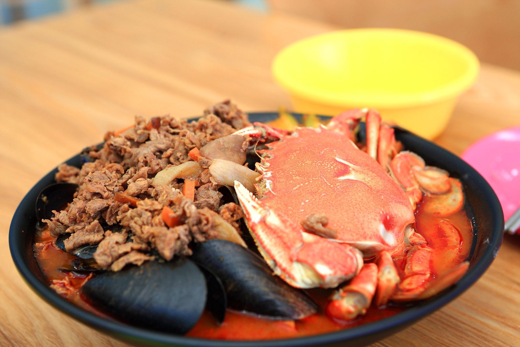 흑돼지로 패티를 만들고 소불고기에 꽃게까지 들어가 정말 크답니다.