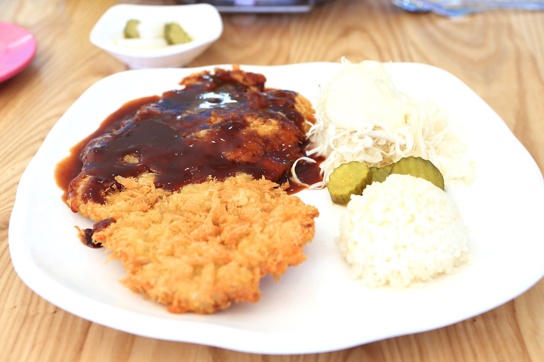 바삭바삭한 튀김옷에 투툼한 돈가스 고기가 씹히는 식감이 좋으며