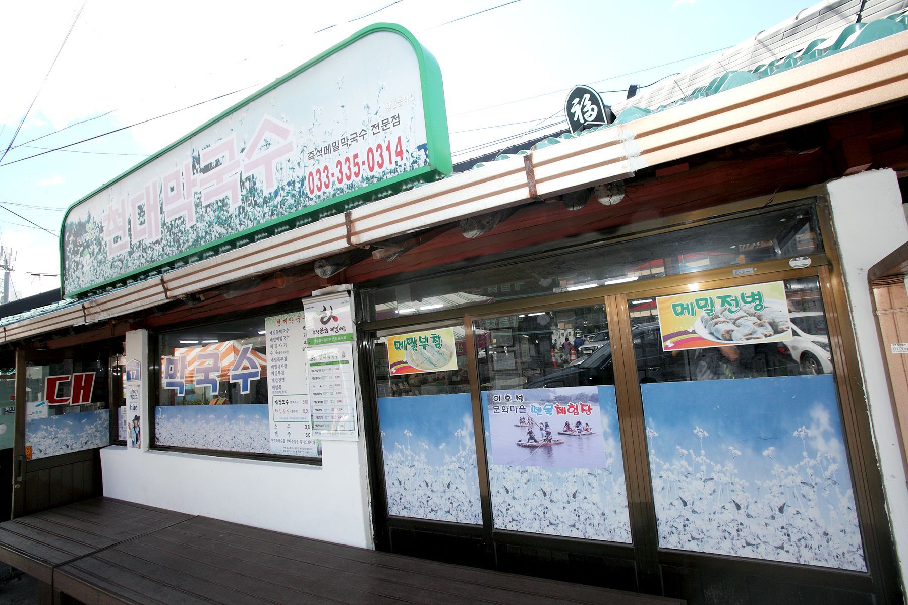 봉평은 메밀의 고장이기 때문에 메밀국수가 유명하고 현대막국수는 지역을 대표하는 가장 오래된 막국수 업체 입니다.