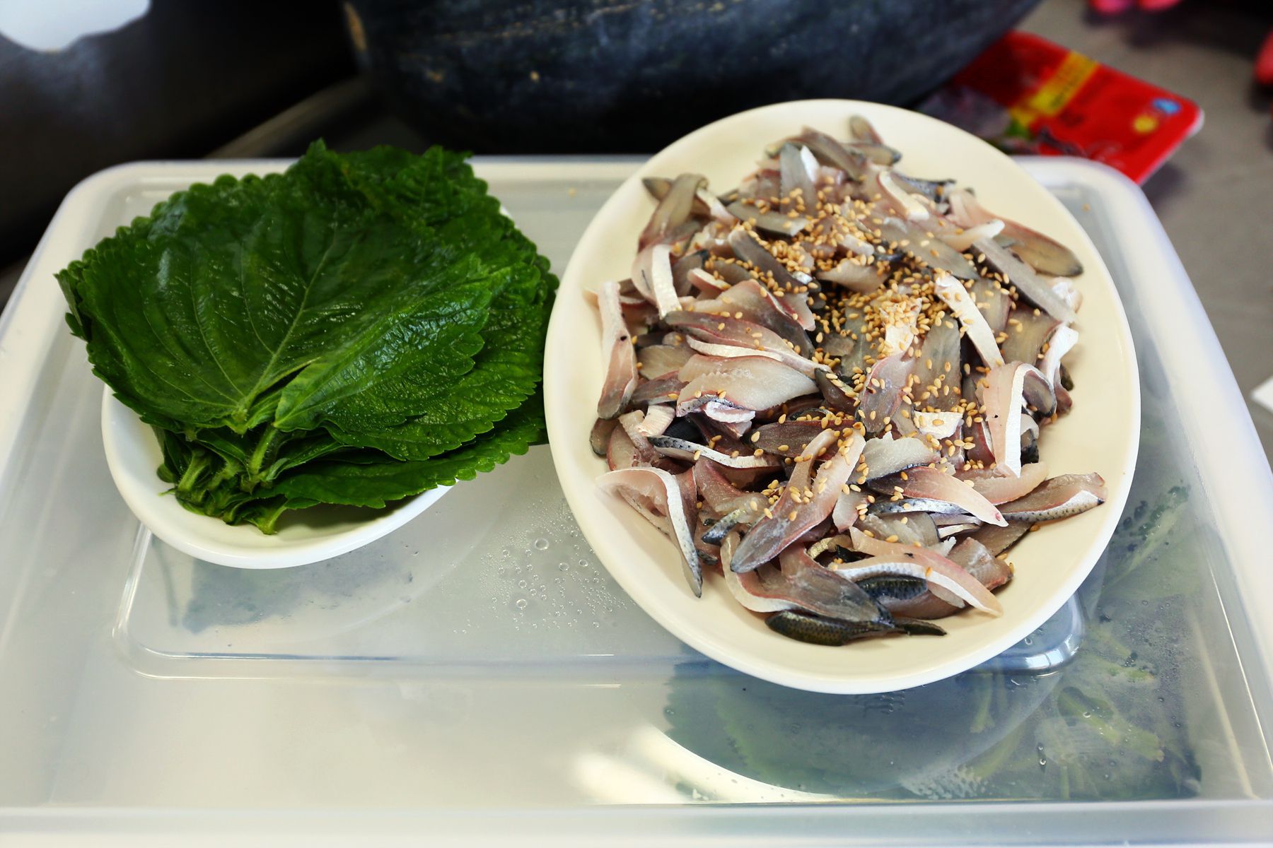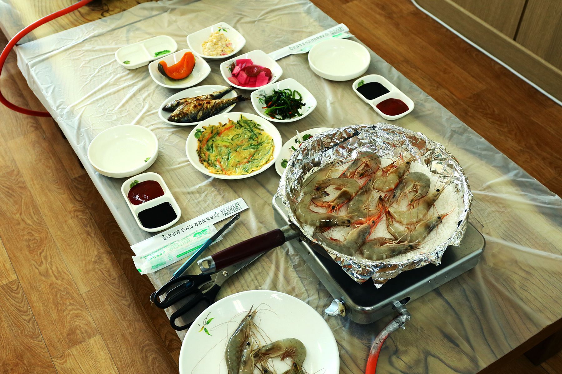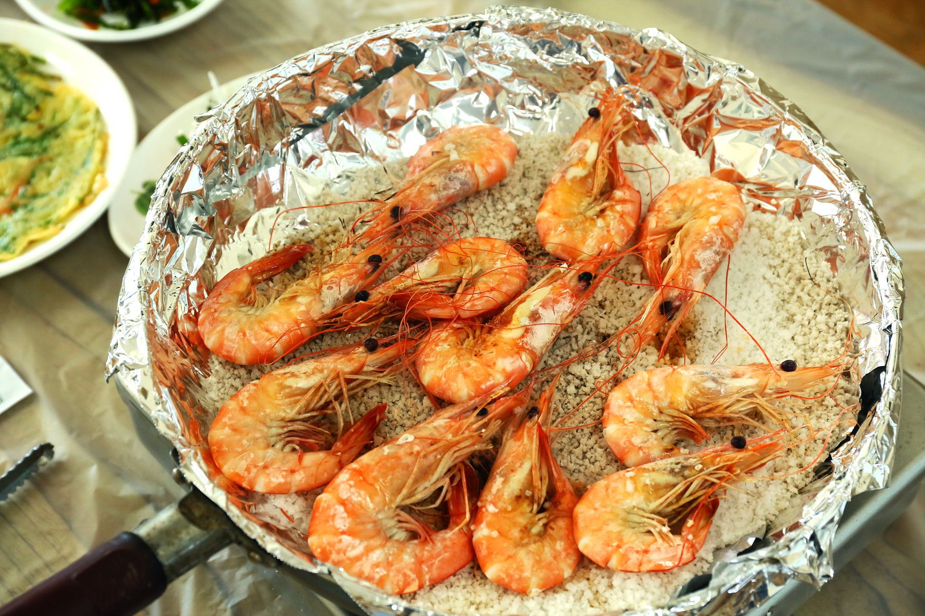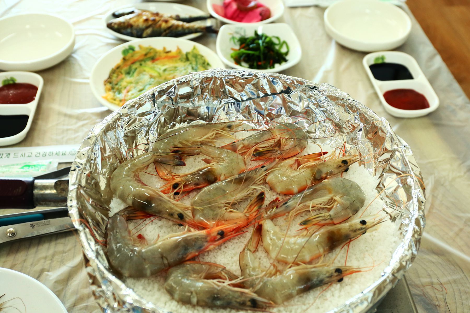 소금위에 싱싱한 대하를 구워 호~호~ 불어가며 껍질을 떼어내며 먹는 재미와 맛이 뛰어나고