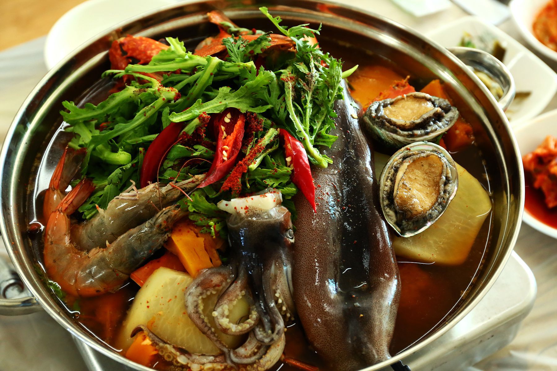 각종 해산물의 풍부한 식감을 즐길 수 있고 인공조미료가 아닌 천연재료만으로 우려낸 국물맛은