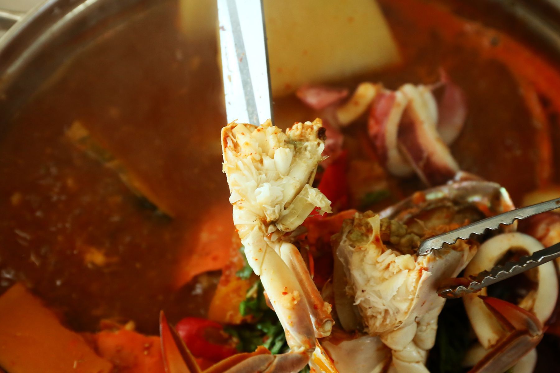 꽃게탕에는 꽃게 뿐만 아니라 오징어,새우,전복 등 다양한 재료를 아낌없이 넣어 칼칼하면서도 깊은 맛이 일품입니다.
