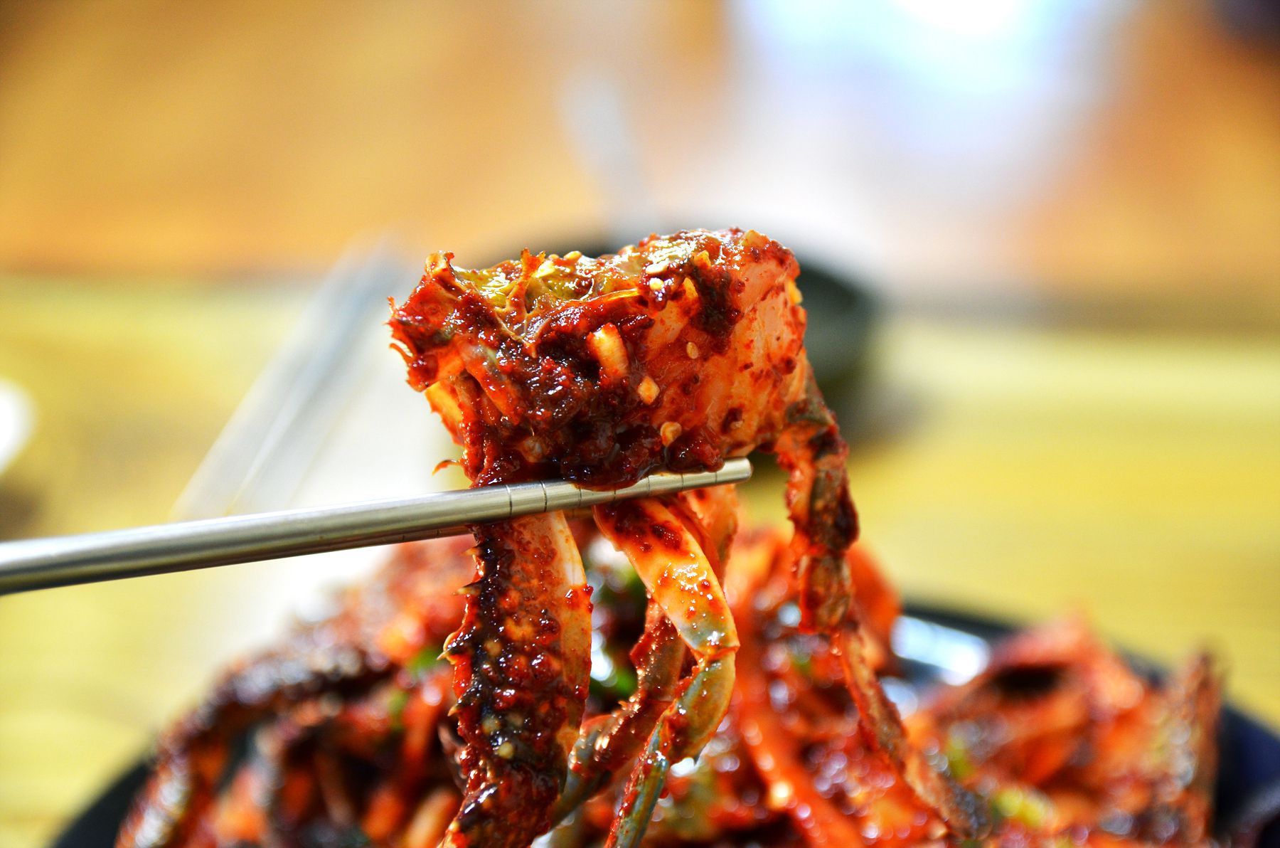 양손을 잡고 꽃게뼈에 묻어있는 양념까지 깨끗하게 다 먹을정도로 맛깔스러운 꽃게무침을 만나보실 수 있습니다.