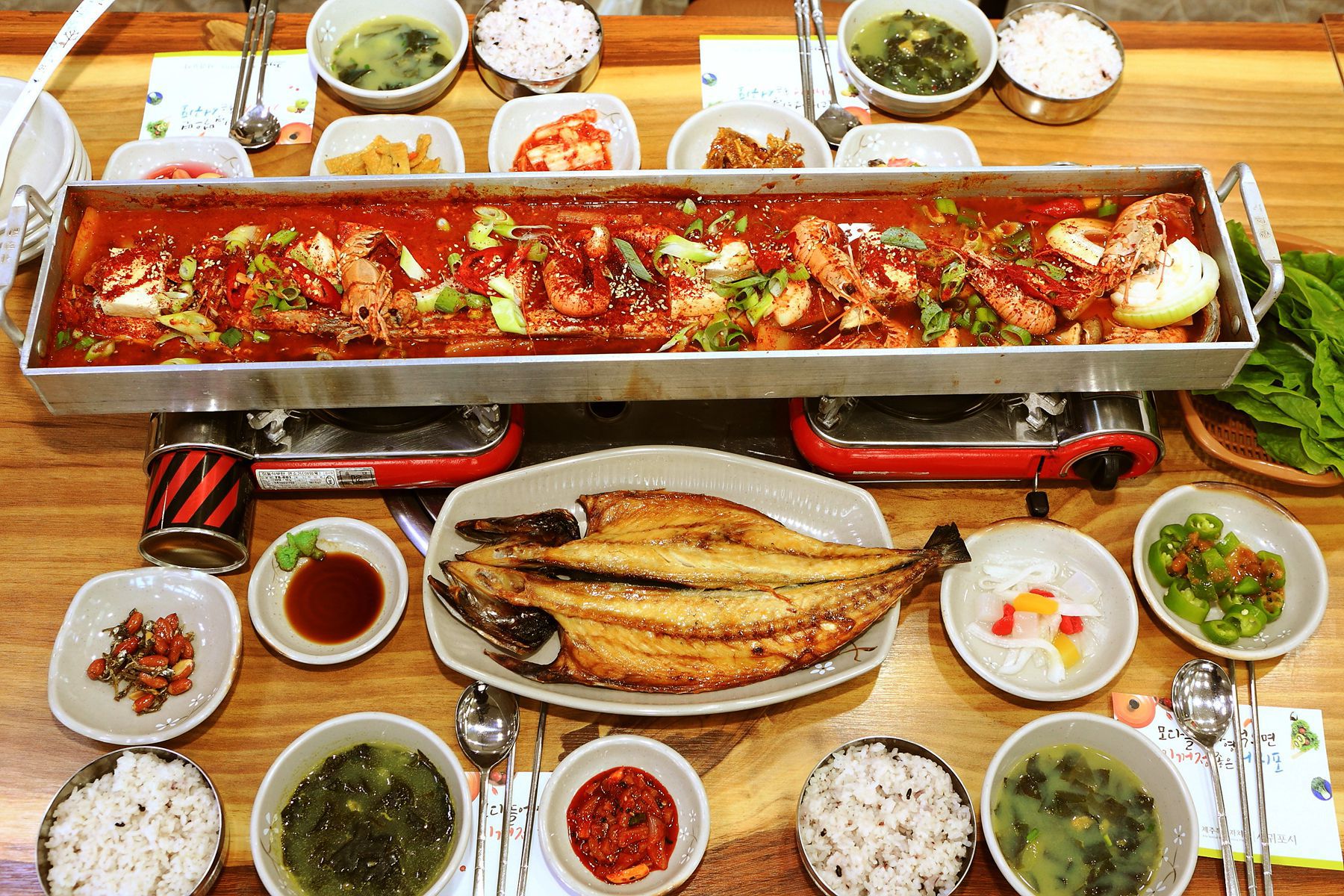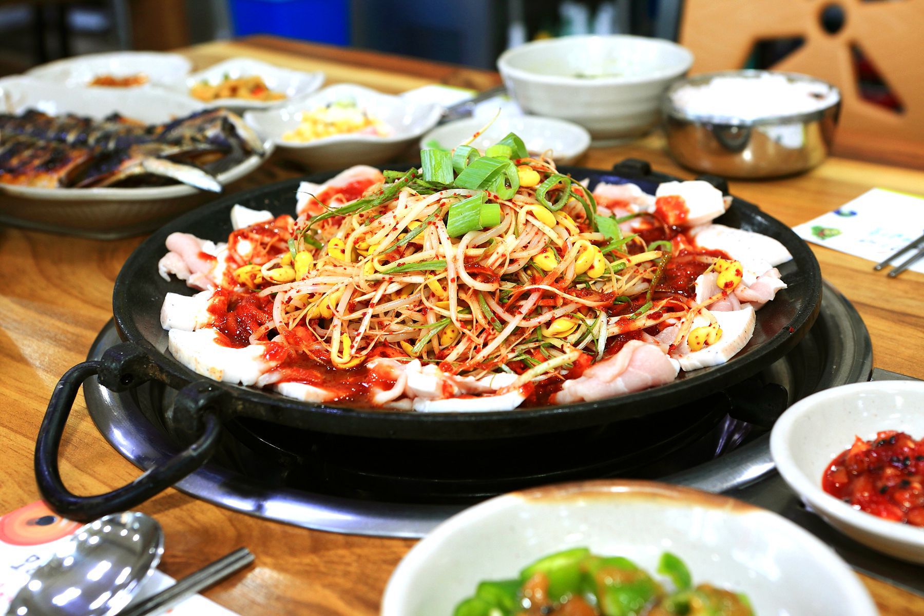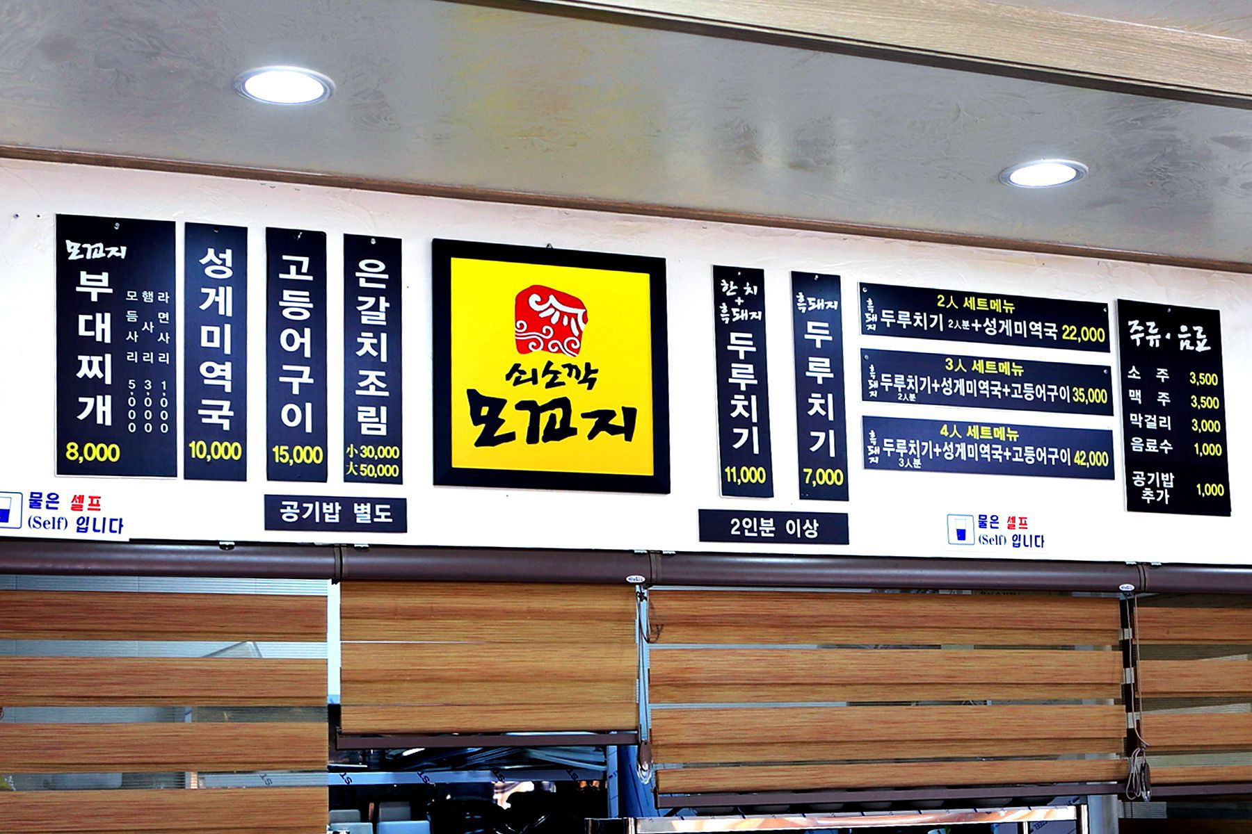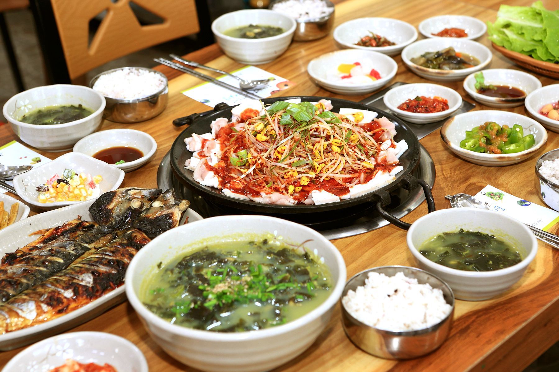 메뉴로는 흑돼지두루치기,은갈치조림,고등어구이,성게미역국,모꼬지부대찌개가 준비되어 있습니다.