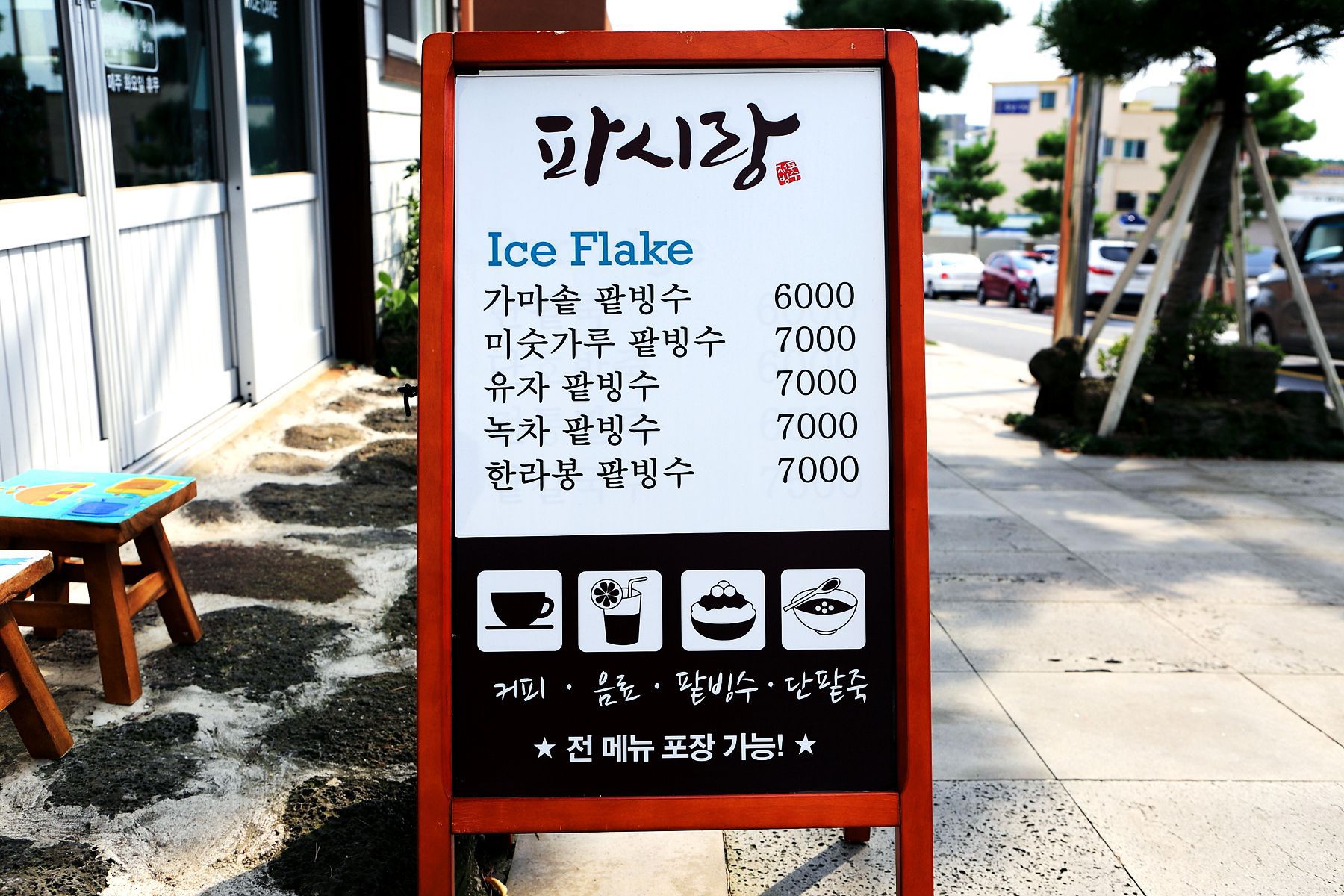 파시랑의 대표메뉴인 팥빙수는 우유얼음 위에 팥과 찹쌀떡이 들어가는데