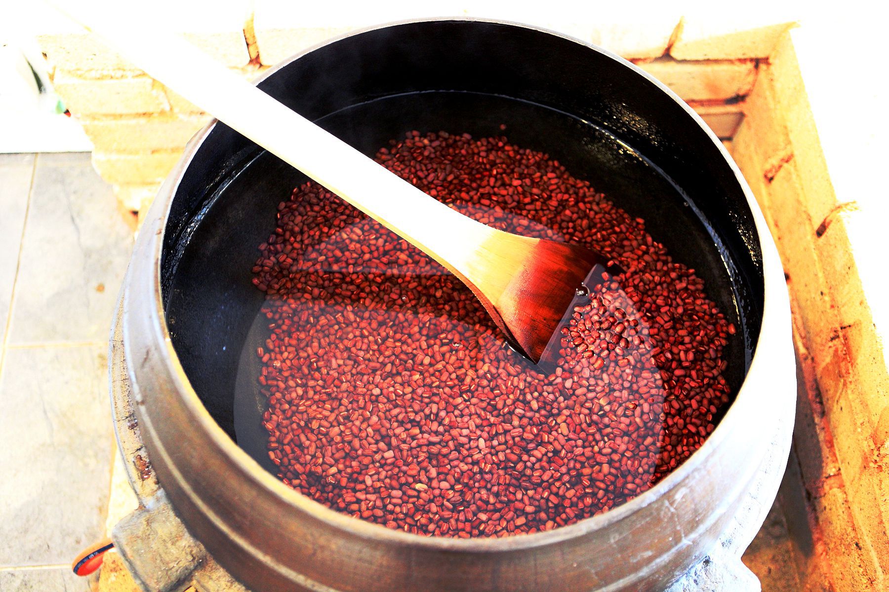 가마솥에4-5 시간 푹 삶은 팥을 사용하여 팥의 알갱이가 살아 있어 식감이 좋고 풍부한 맛을 지녔습니다.