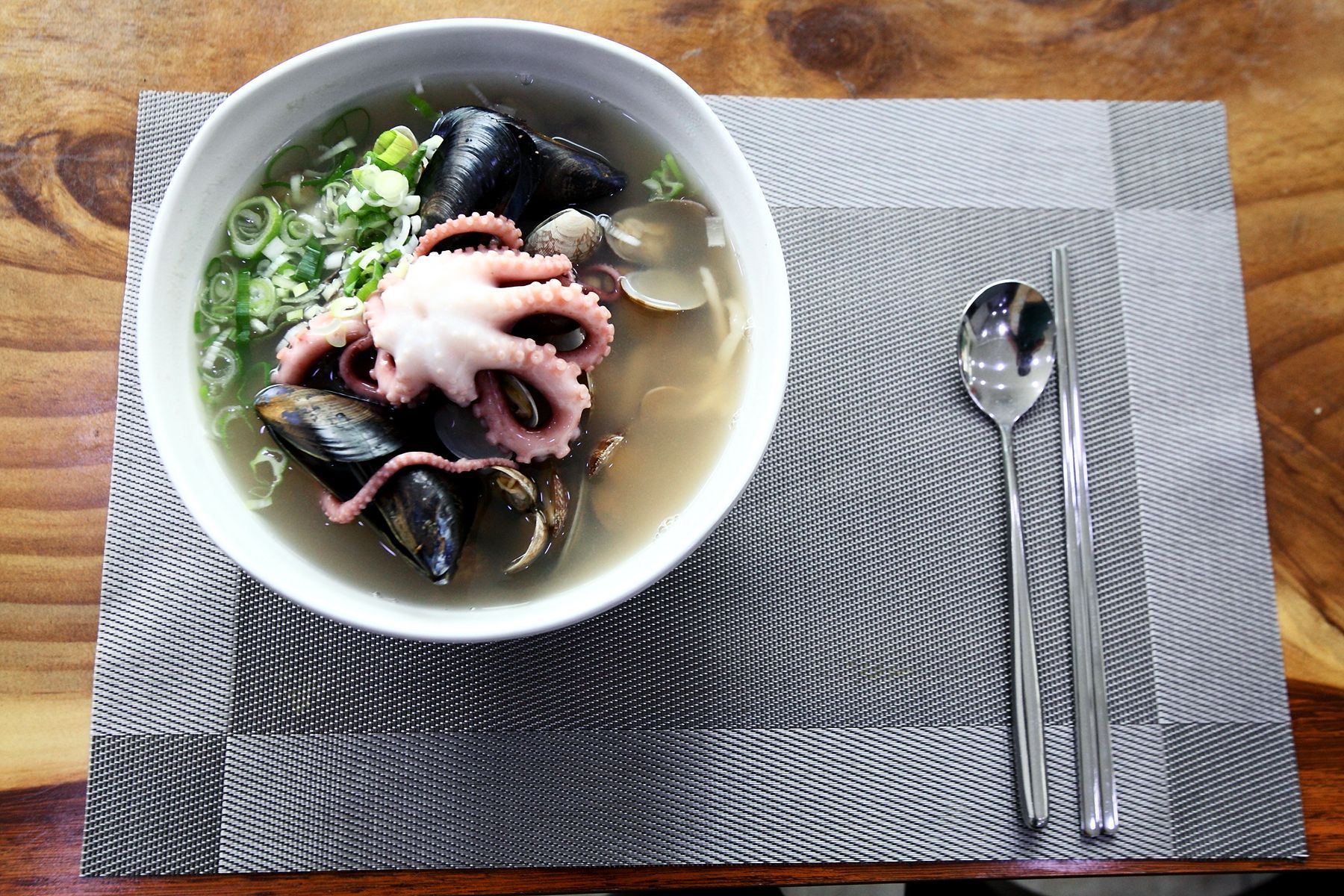 바지락이 많이 들어가서 국물이 깊고 시원하며 감칠맛이 납니다.