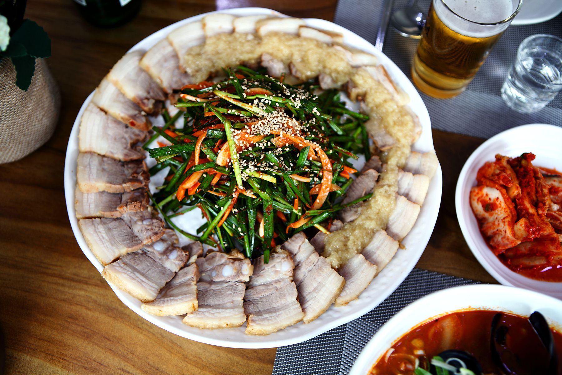쫄깃한 식감은 살리고 부드럽고 촉촉하며 고소하게 잘 삶아낸 수육은 냄새없이 맛있습니다.