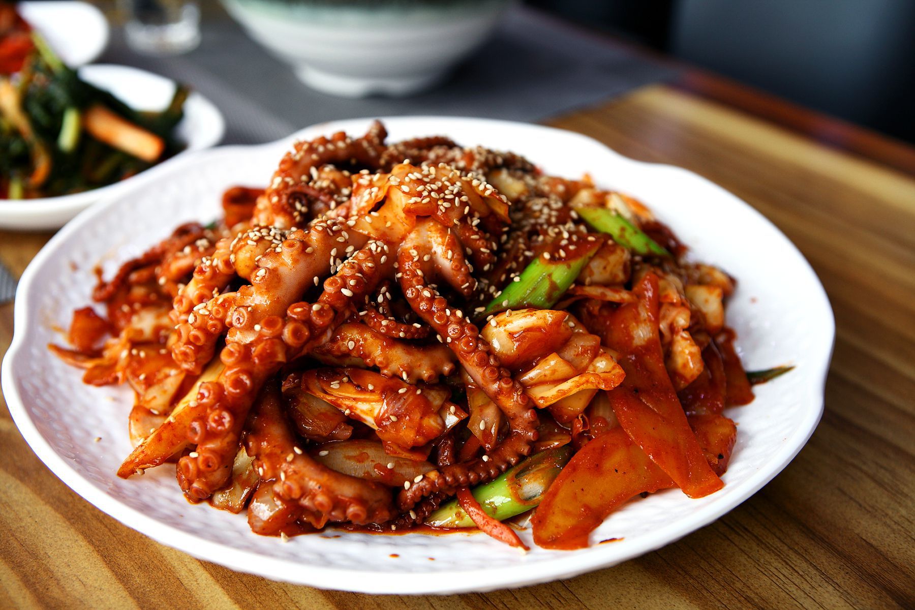 맛있게 매콤하고 쫄깃한 통낙지볶음입니다.