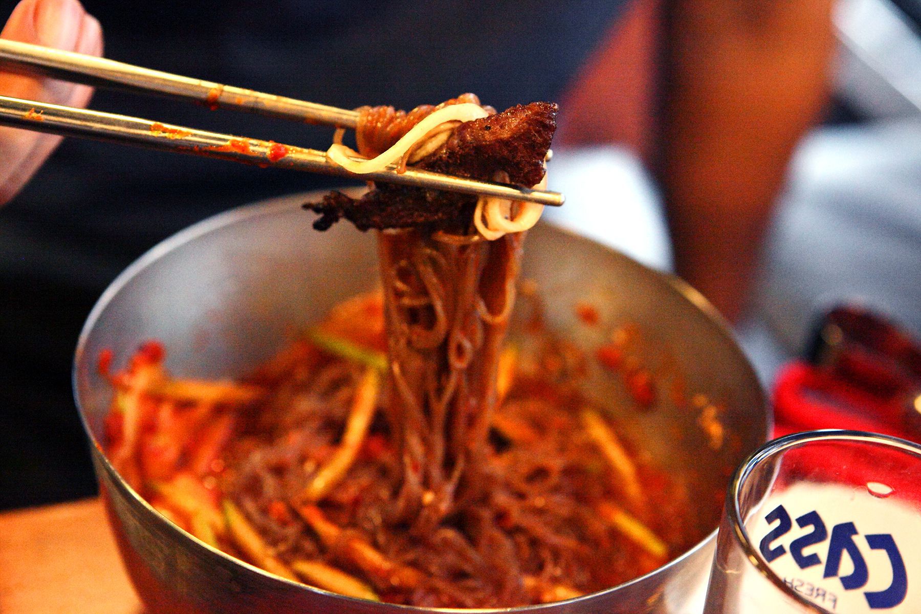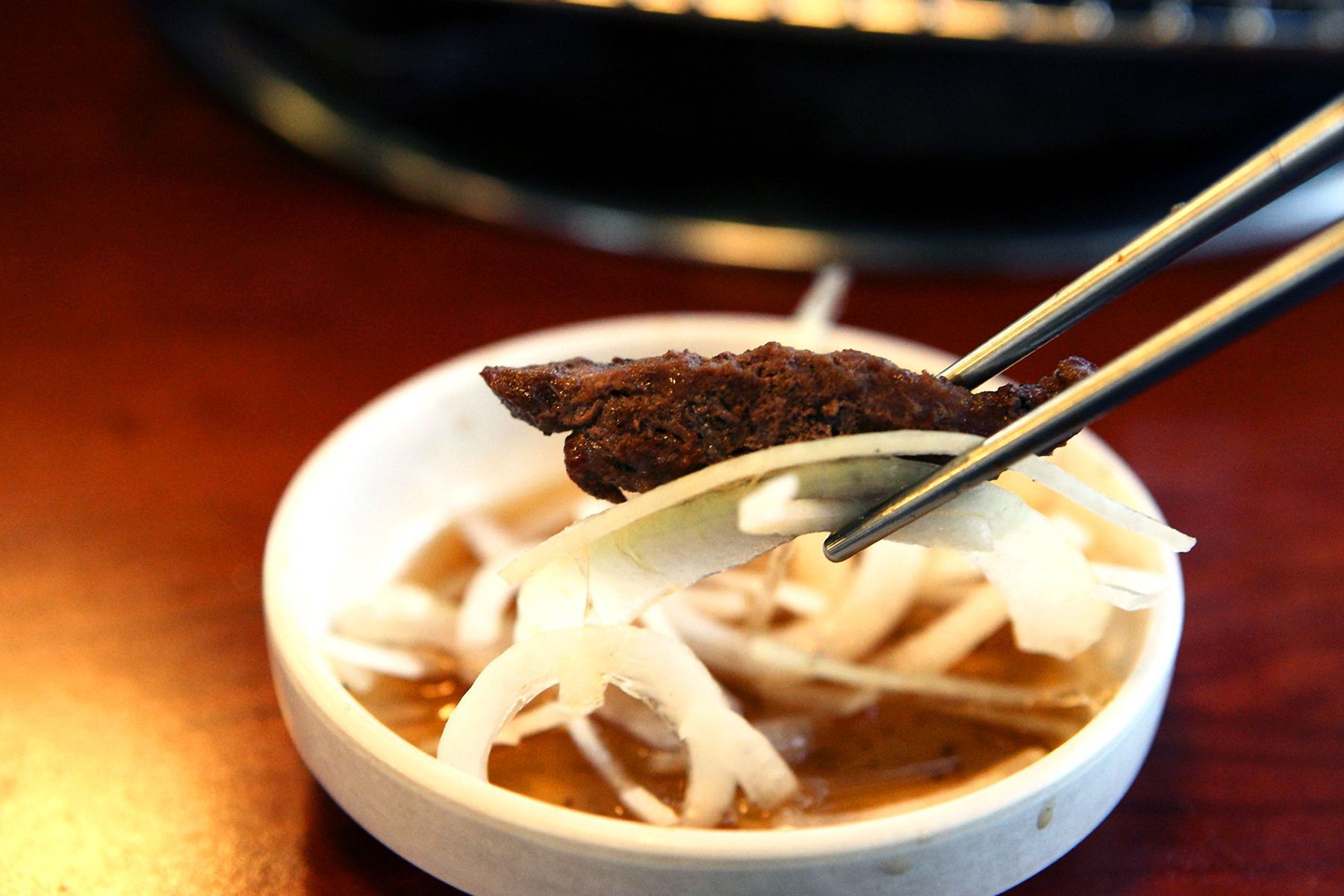 최고봉만의 간장소스에 양파 한올 감아 드시면 풍부한 향과 맛을 느낄 수 있으며