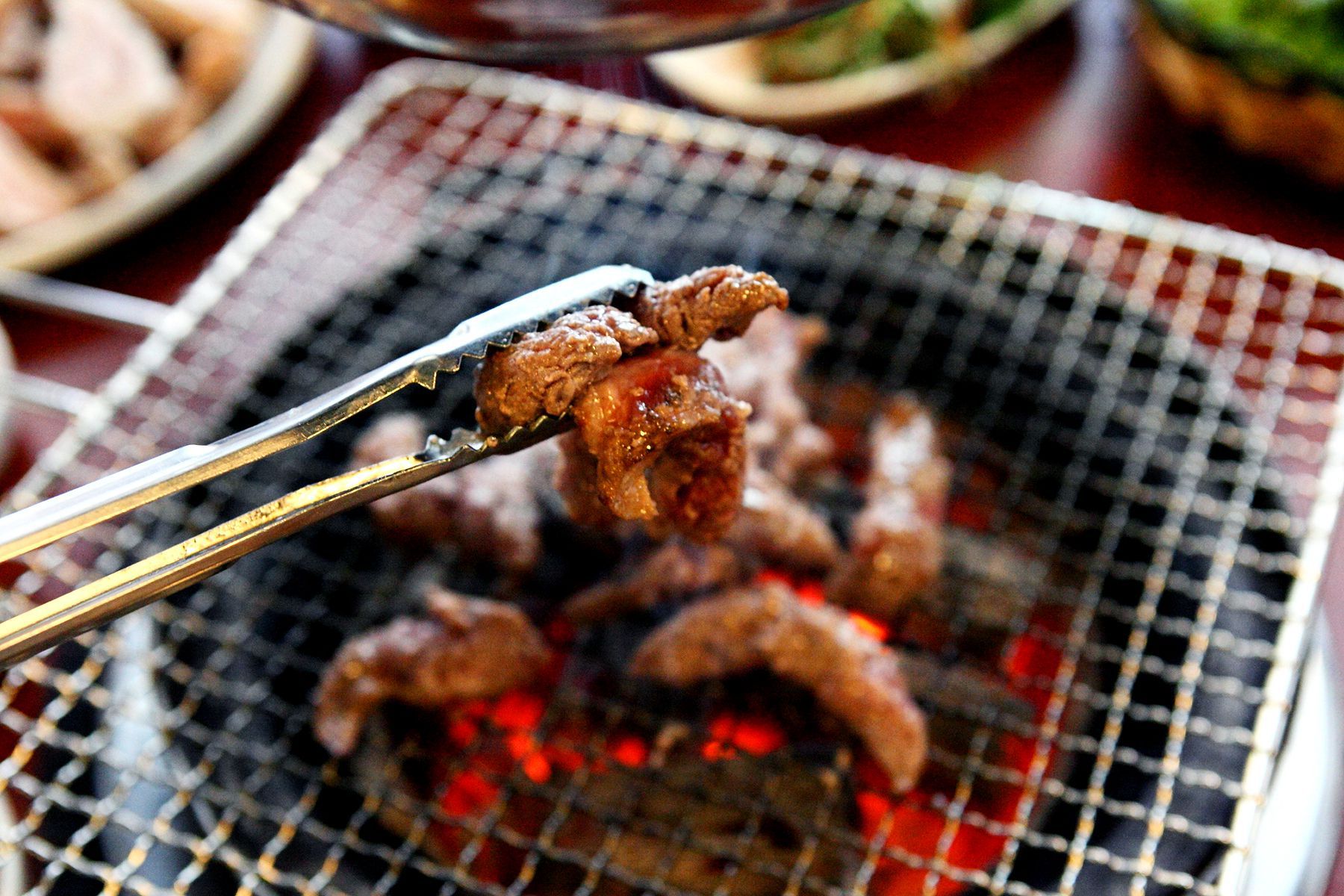 천연 참숯직화 구이이기 때문에 고기가 타지 않고 육즙이 마르지 않게 자주 뒤집어