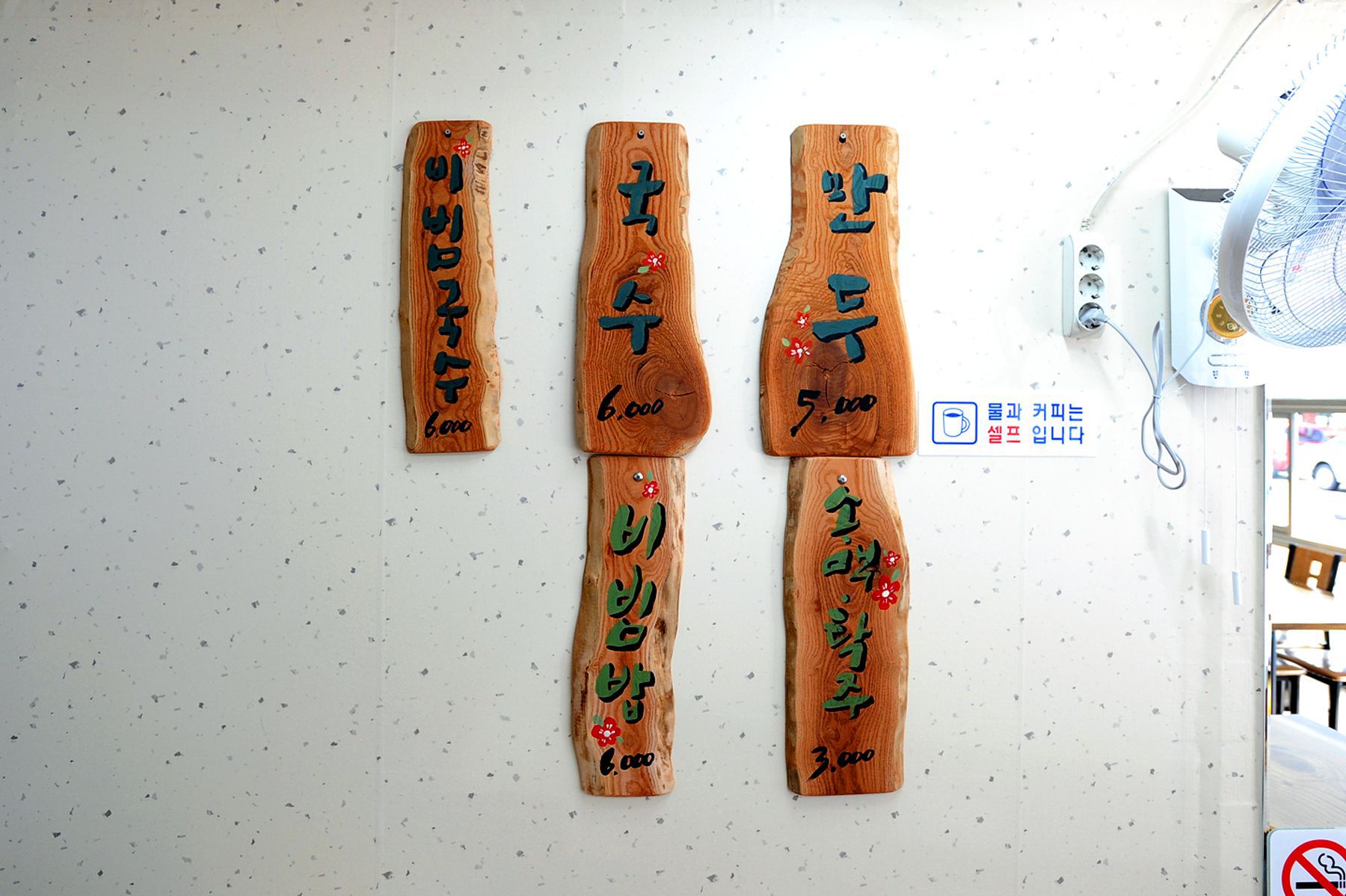메뉴는 비빔국수,국수,비빔밥,만두,주류가 있습니다.