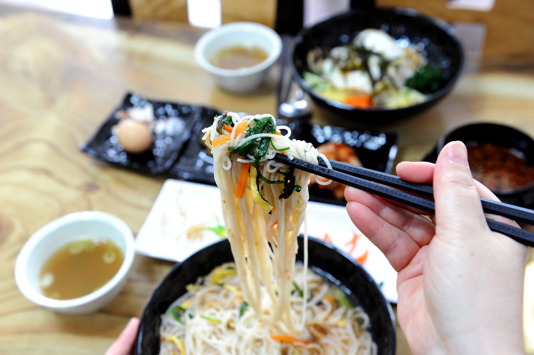 부드럽고 진하며 풍부한 육수에 각종재료를 넣어 만든 양념장을 넣어 후루룩 먹는 국수는