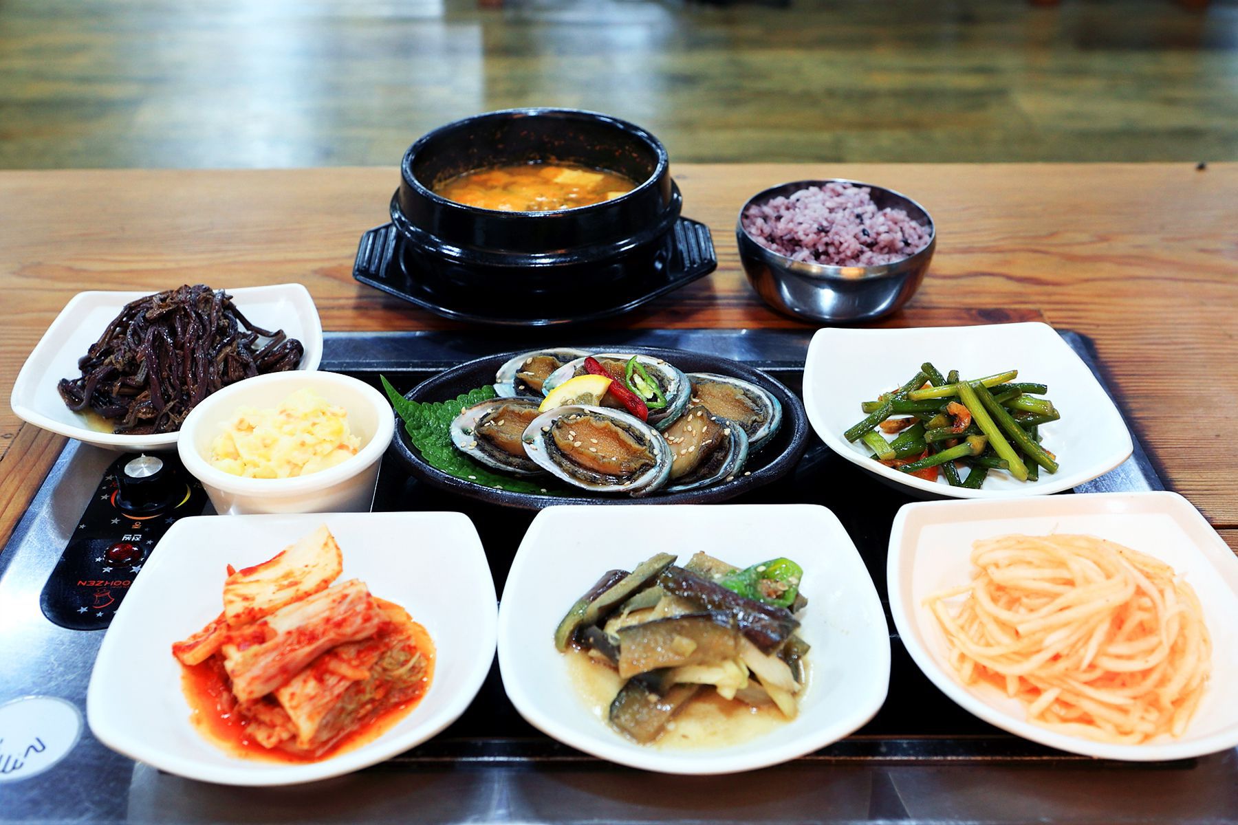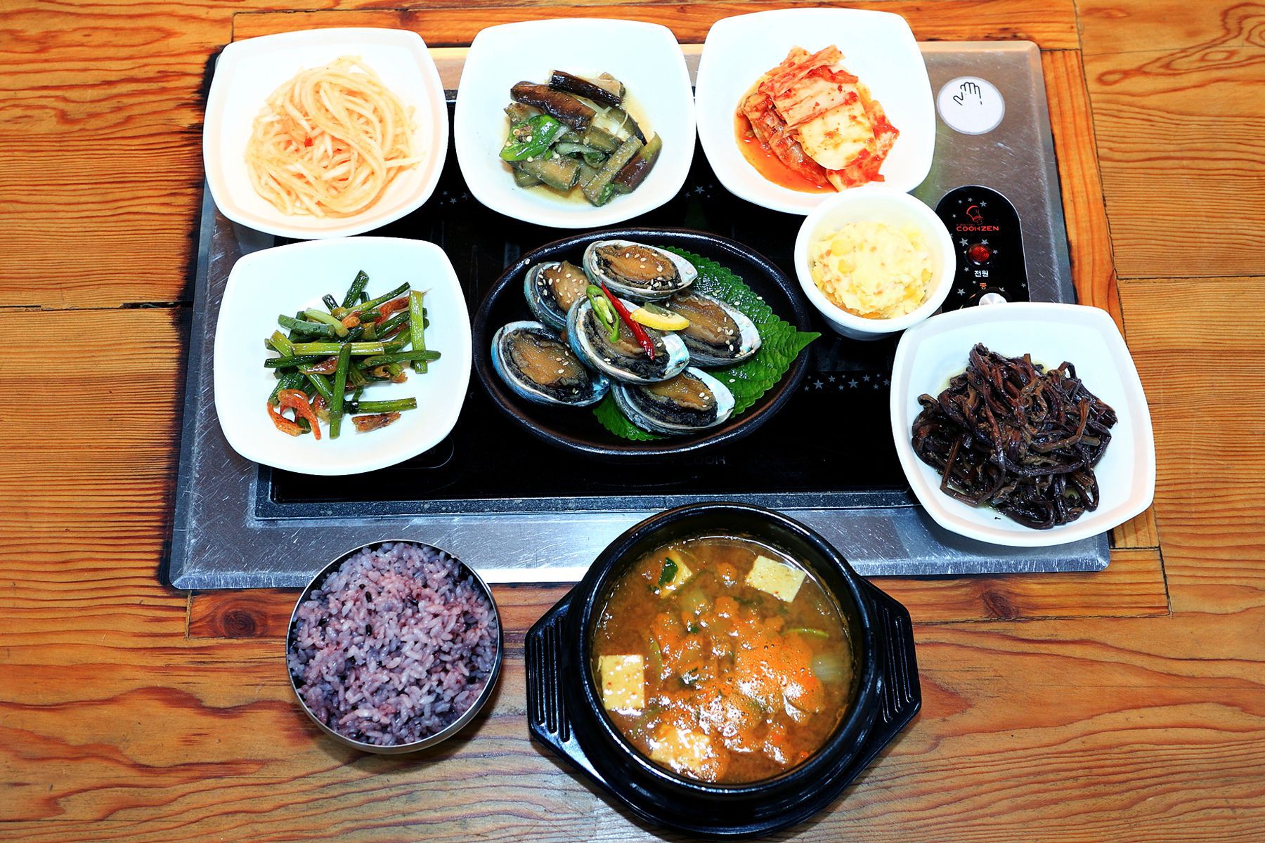 구수한 된장찌개와 다양한 반찬들이 함께 차려지는 전복장정식은 신선한 전복을 통으로 푸짐하게 드실 수 있습니다.