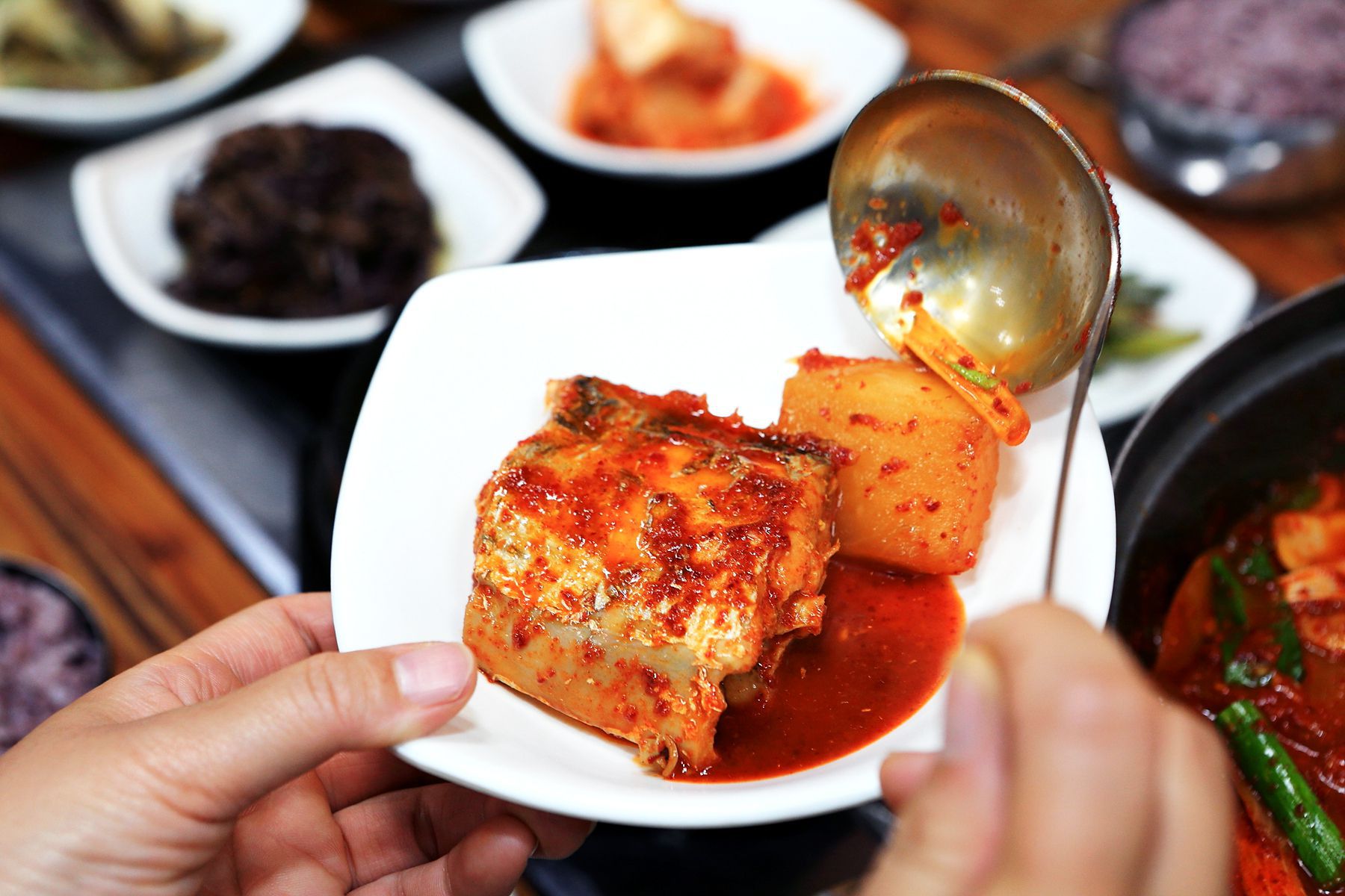 푹익어 더욱 달달한 맛이 느껴지는 무우와 양념에 슥슥 비벼 드시면 더욱 맛있게 즐기실 수 있습니다.