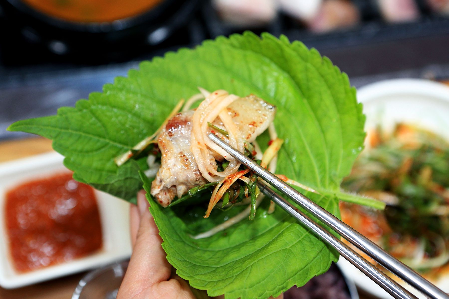 향긋한 깻잎에 파절임과도 환상적인 궁합을 자랑하는 쌈으로 드시면서 사랑하는 사람들과의 오붓한 식사를 즐겨보시기 바랍니다.